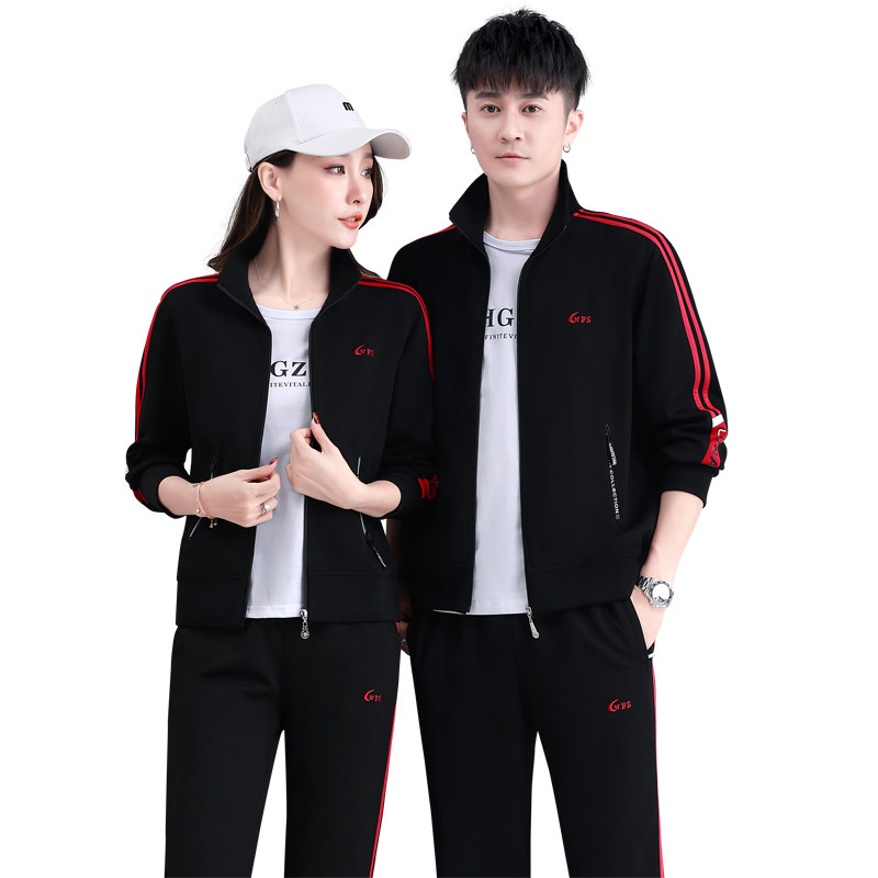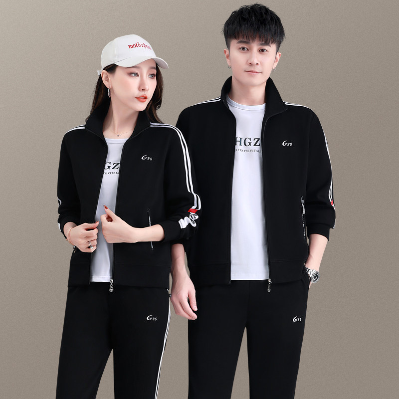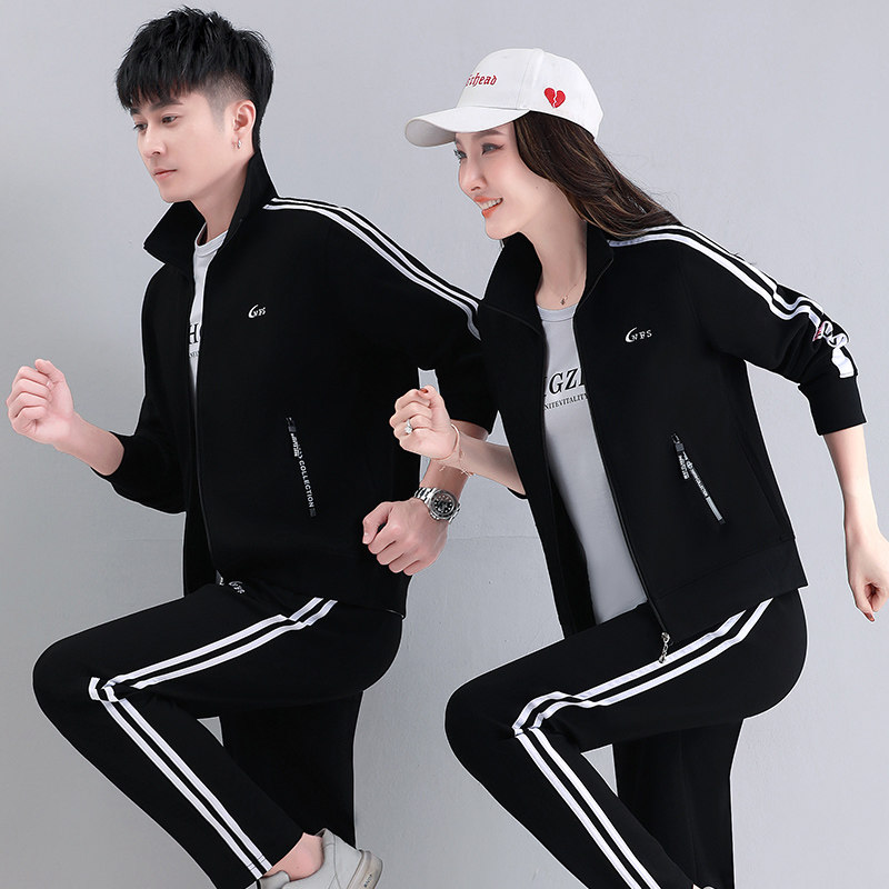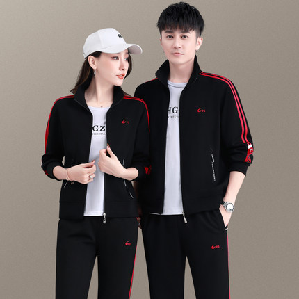运动服套装男女同款2025春秋潮流情侣团队大码跑步休闲卫衣三件套