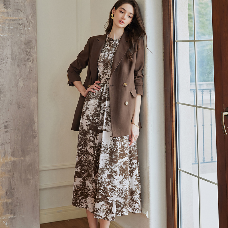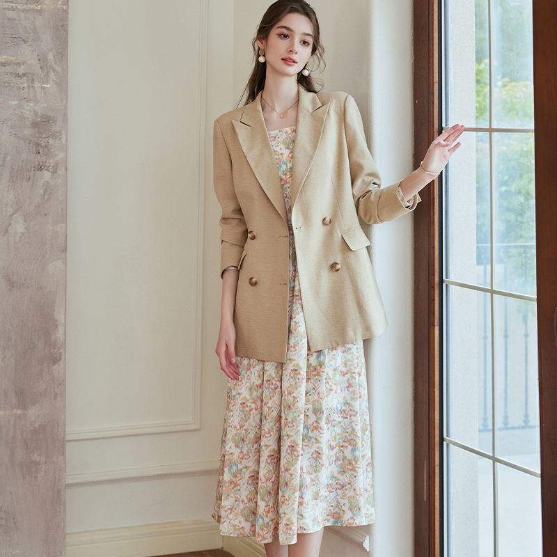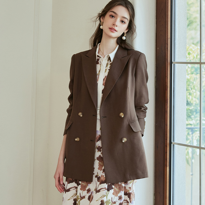 罗衣知性职业卡其色西装外套