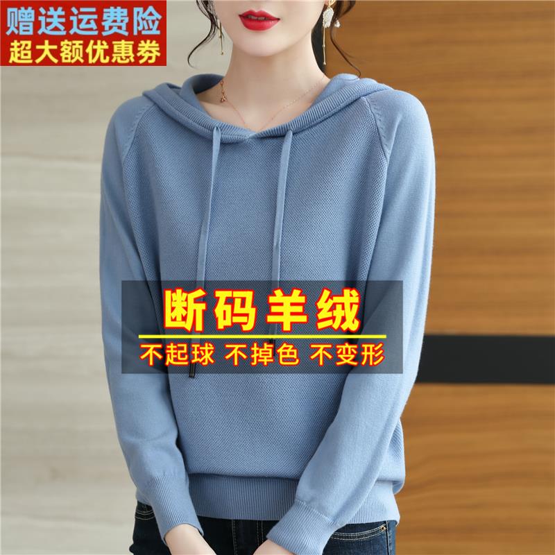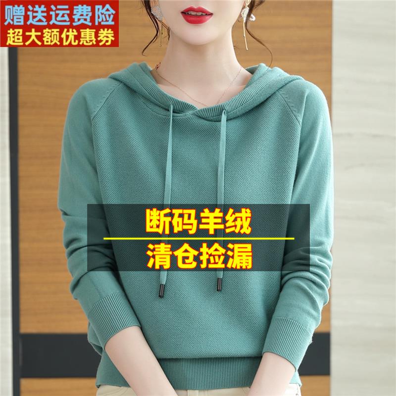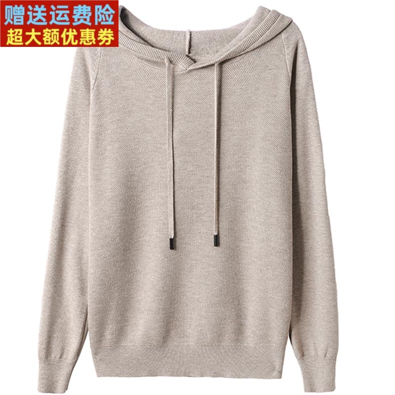 鄂尔多斯市羊绒衫女带帽卫衣2023新款连帽羊毛针织衫打底毛衣宽松