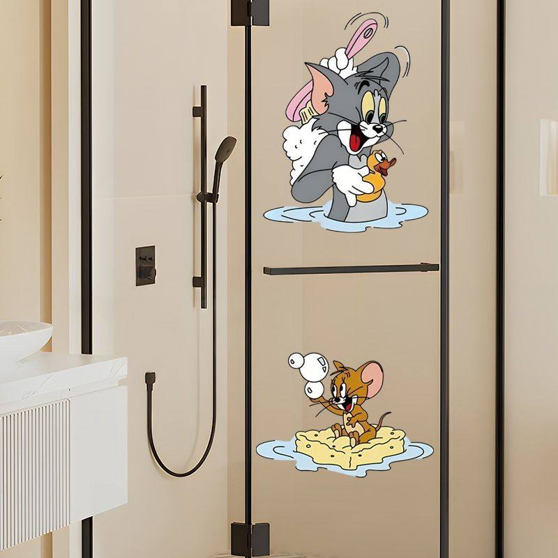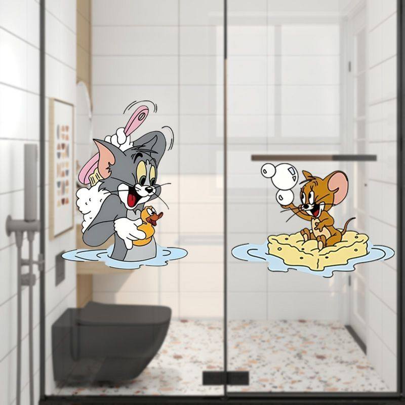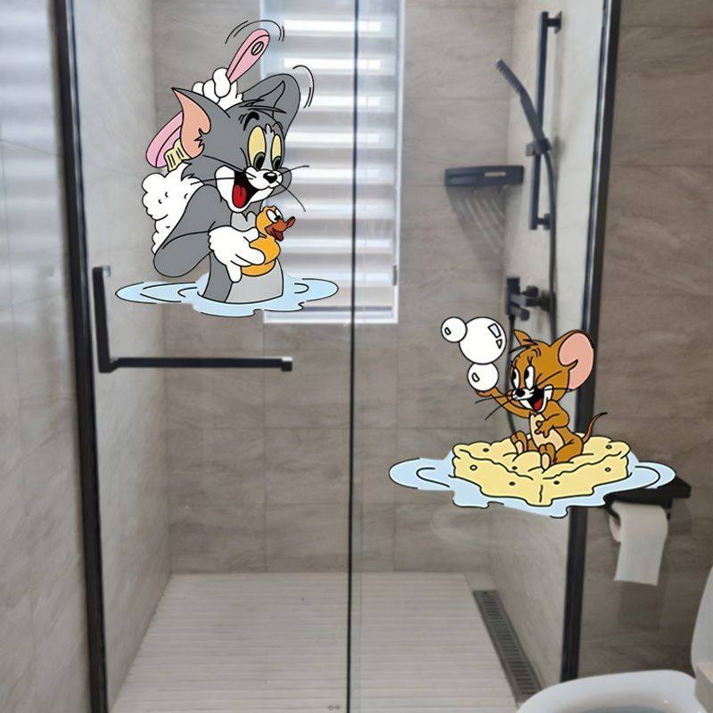 猫和老鼠卡通厕所浴室贴画厨房门玻璃贴纸防水墙贴我爱洗澡贴纸
