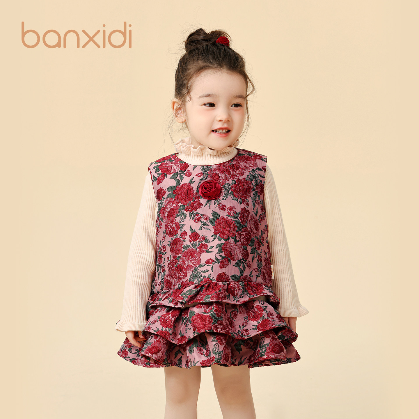 Banxidi女童连衣裙秋冬装2025新款洋气儿童加绒背心裙宝宝公主裙