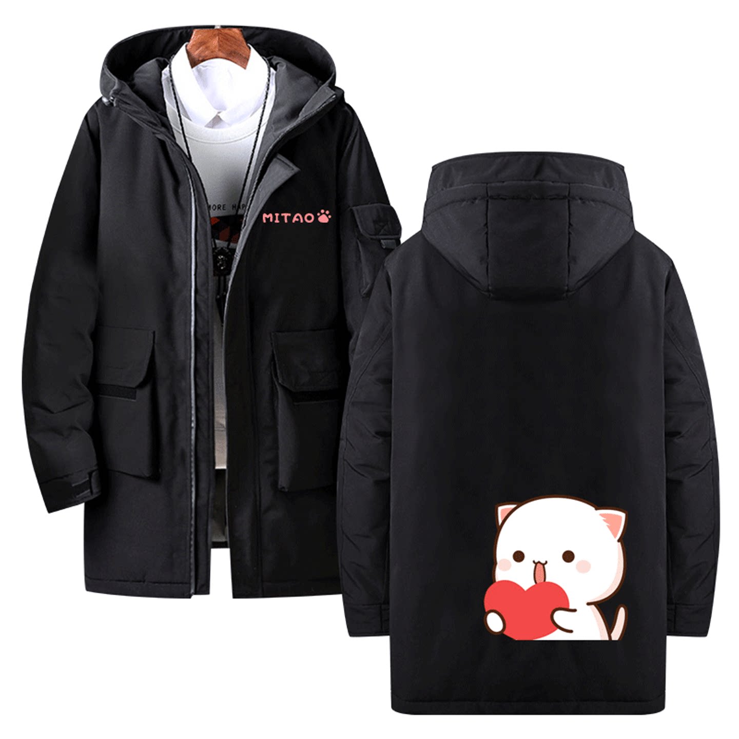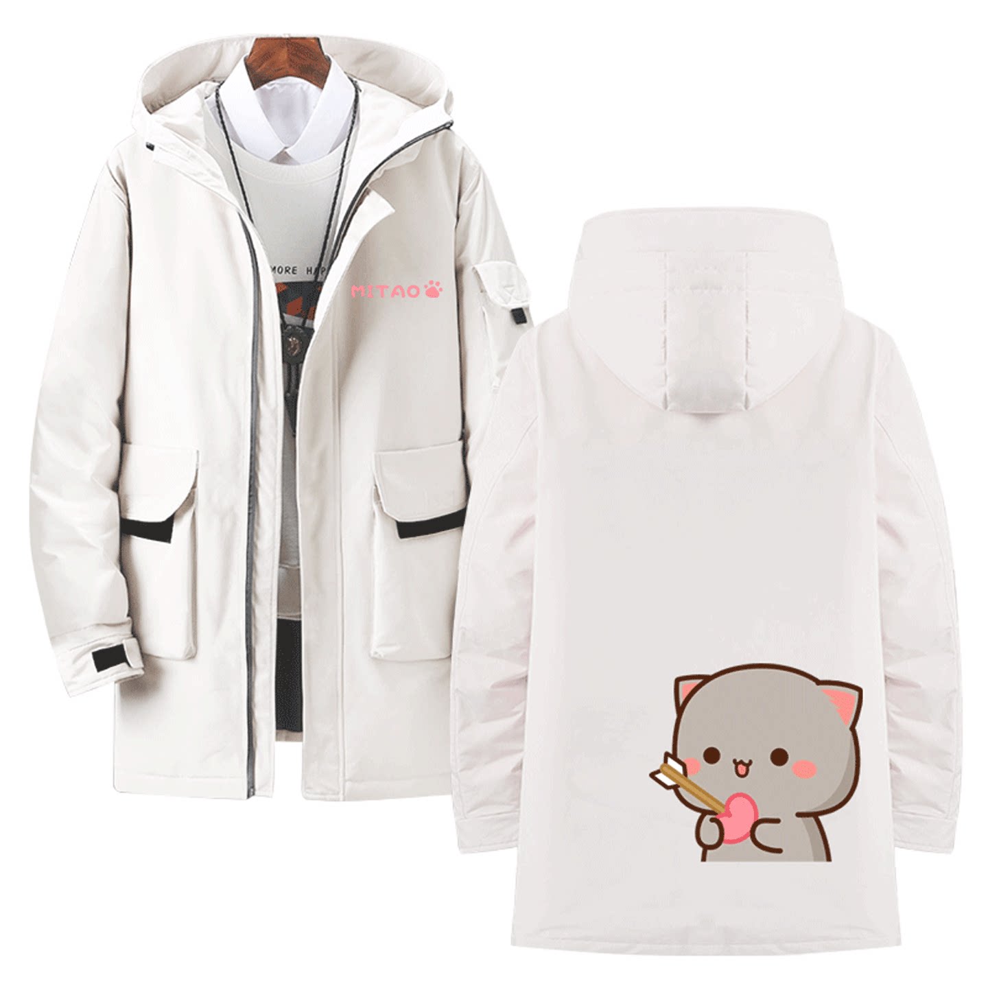 蜜桃猫卡通可爱周边动画潮版男女情侣秋冬可定制外套中长款羽绒服