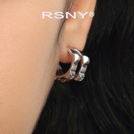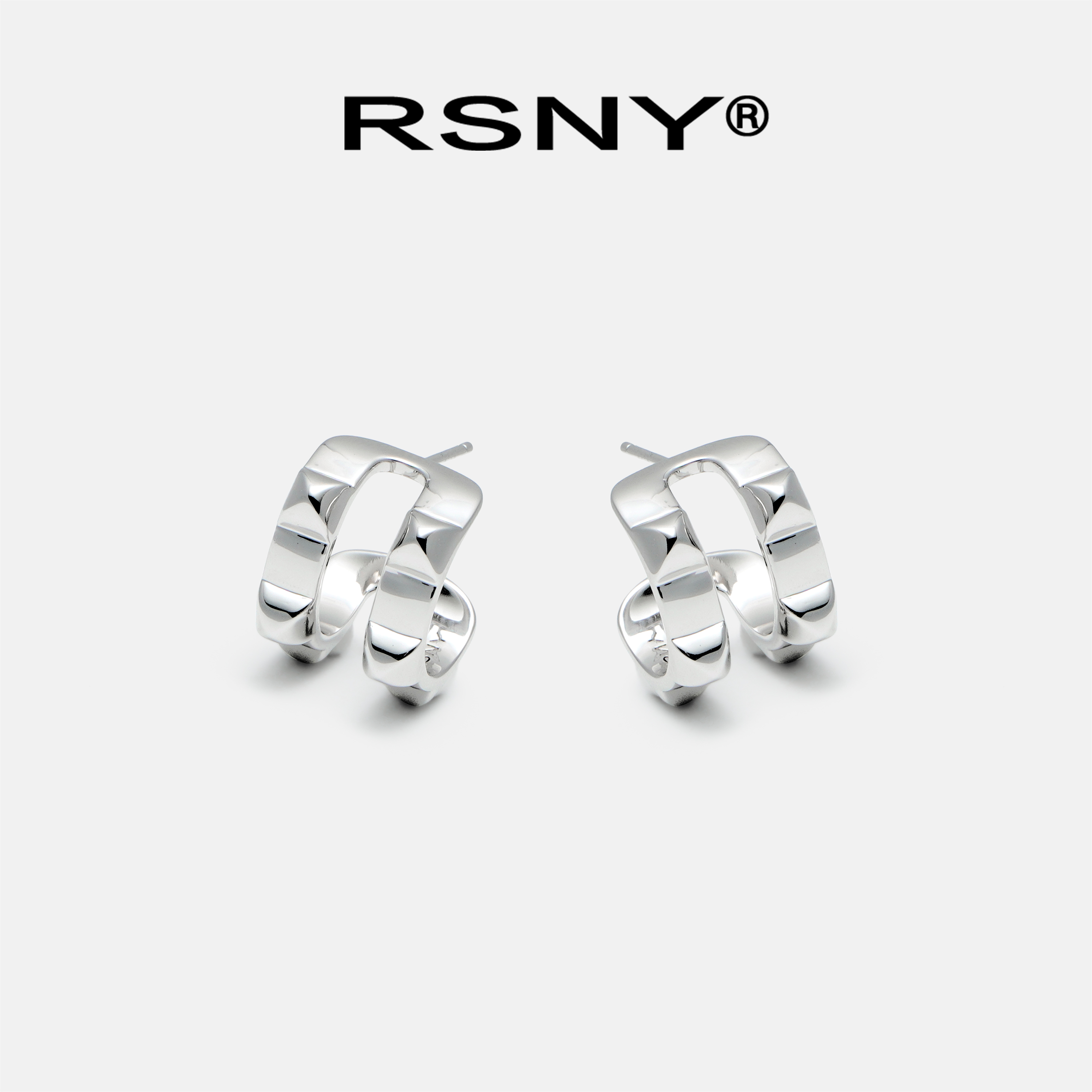 [新品]RSNY双条钻石纹耳环几何造型欧美简约气质轻奢纯银耳针耳钉