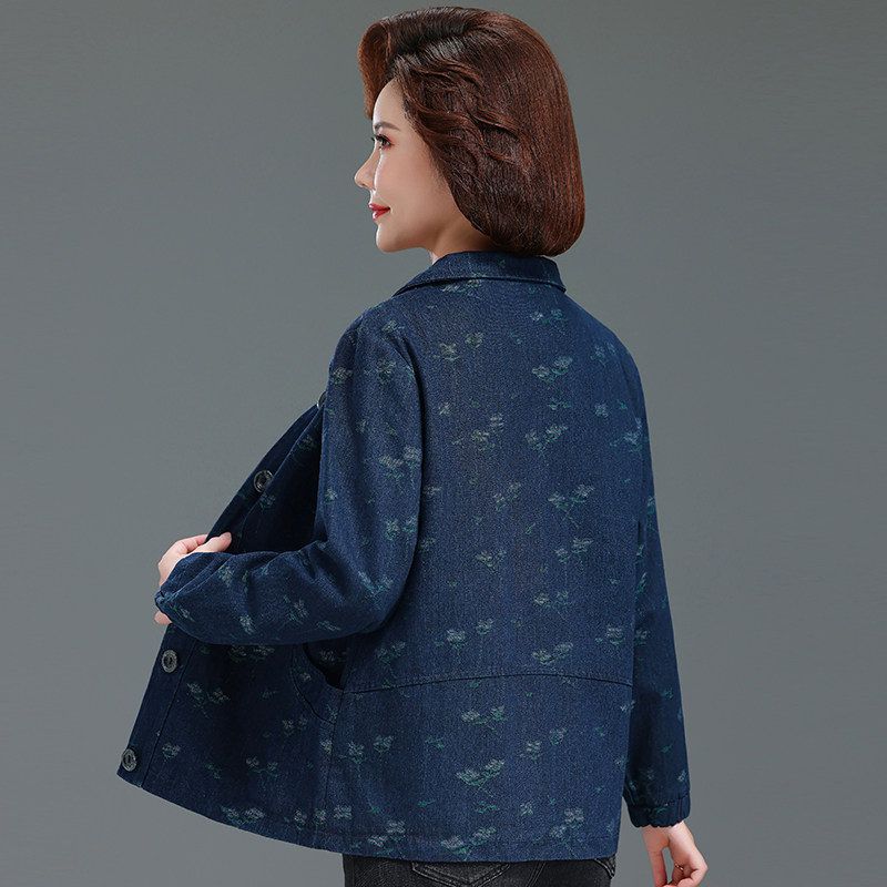 妈妈春秋纯棉外套洋气新款中老年秋装短款风衣60岁中年女牛仔上衣