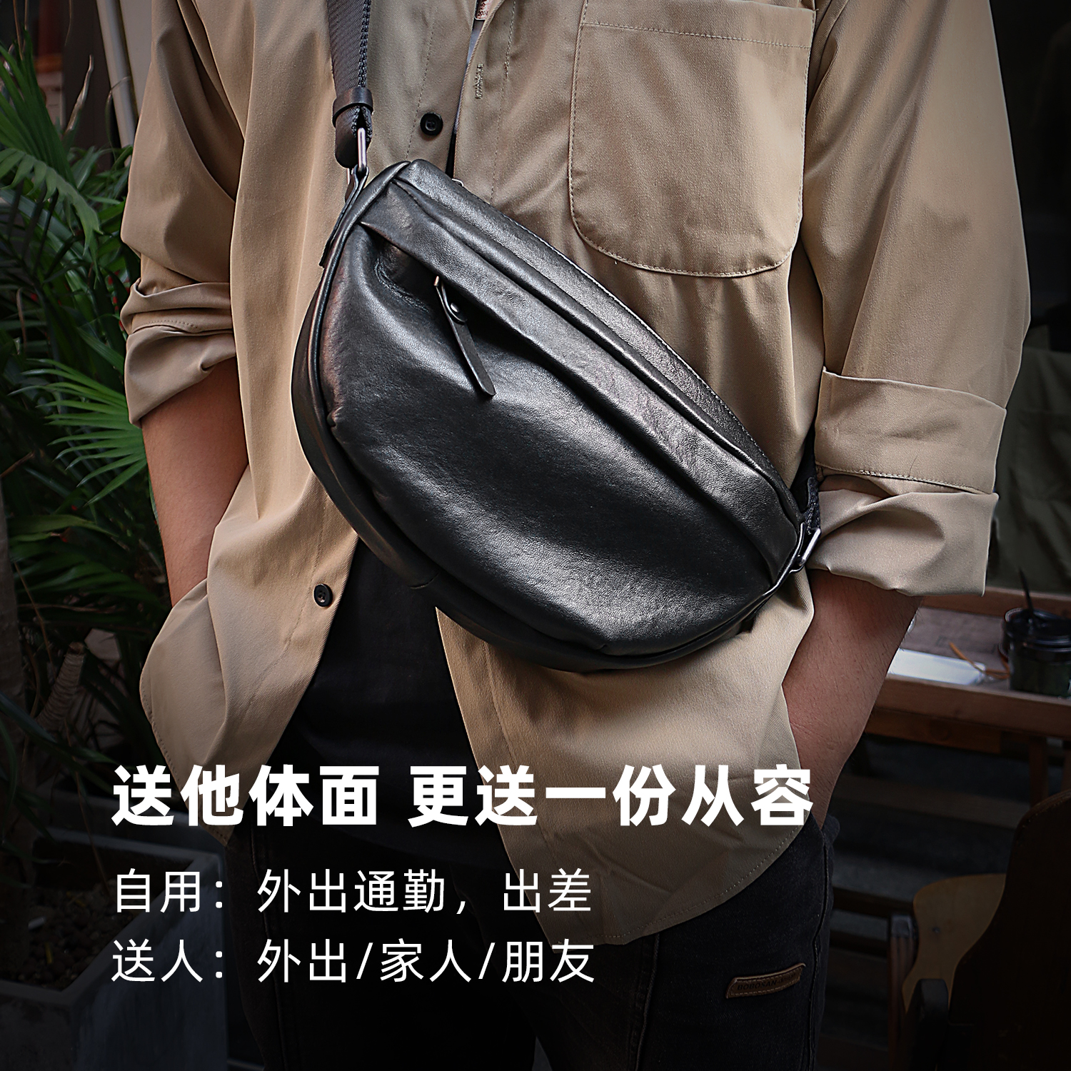 头层牛皮真皮男士单肩斜挎包2025新款高级感高端胸包男款背包男包