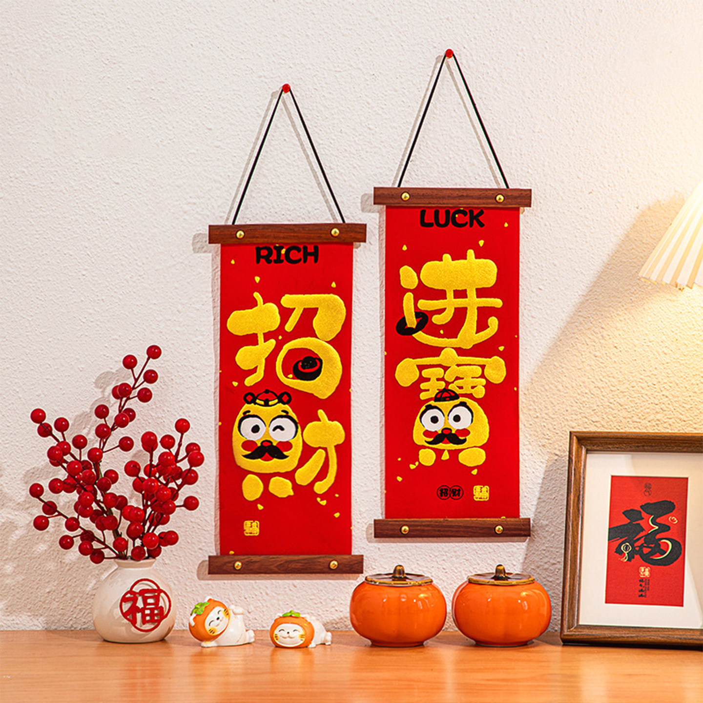 JOJO'S L. PD.Mingr.平安喜乐卧室玄关装饰实木布艺挂画 | 冥二