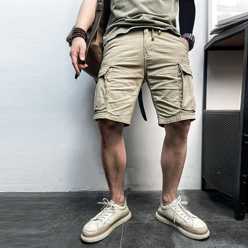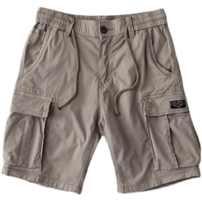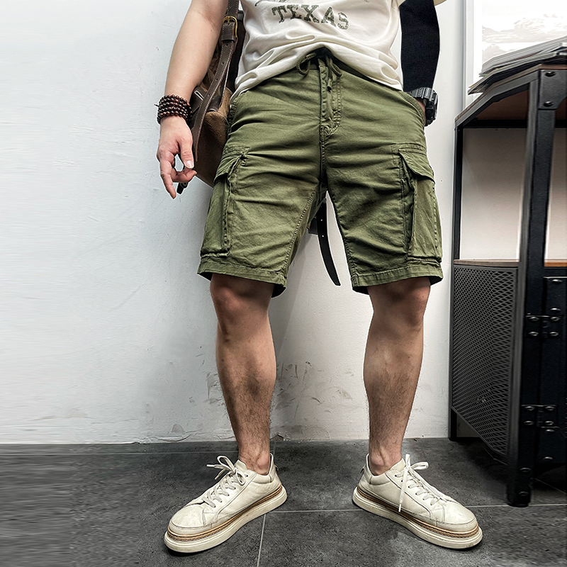 11611 夏季薄款美式复古松紧腰男士暗扣大口袋水洗棉工装休闲短裤
