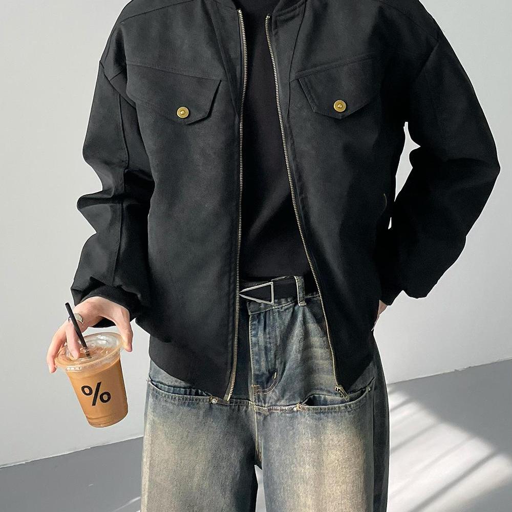 秋冬韩版时髦复古cleanfit工装皮质短款夹克外套男士宽松棒球服潮
