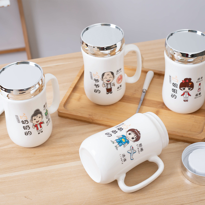 创意亲子杯一家三口四口杯子家用喝水家庭水杯专人专用陶瓷早餐杯