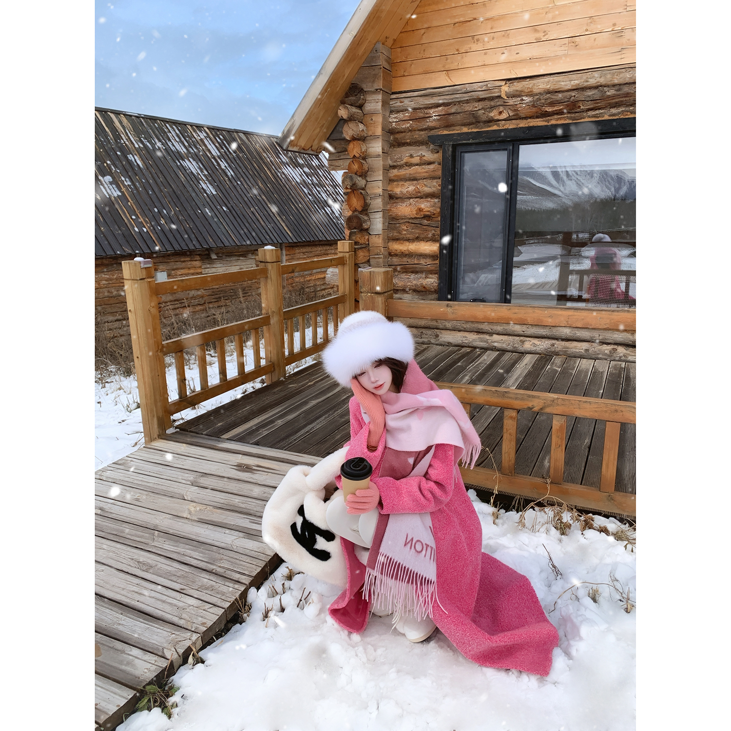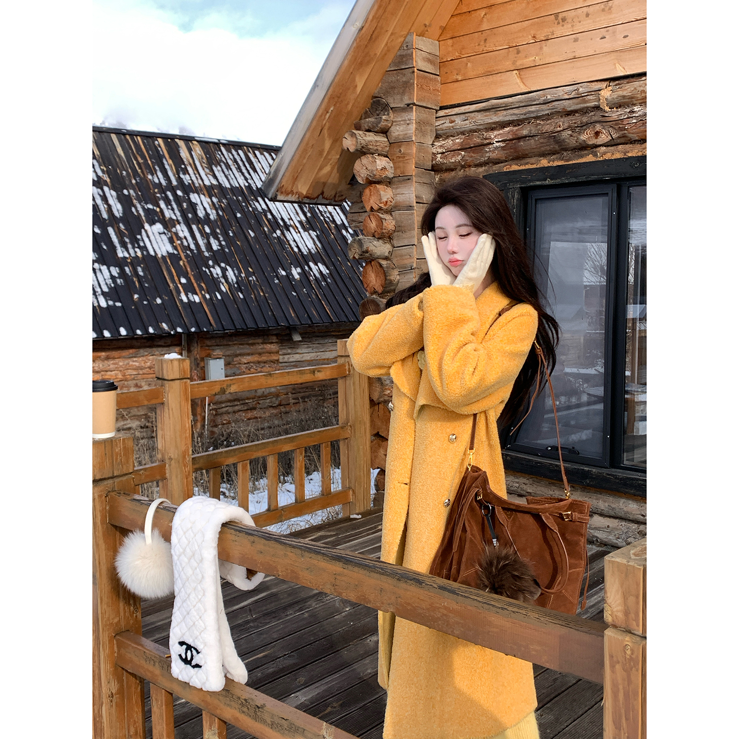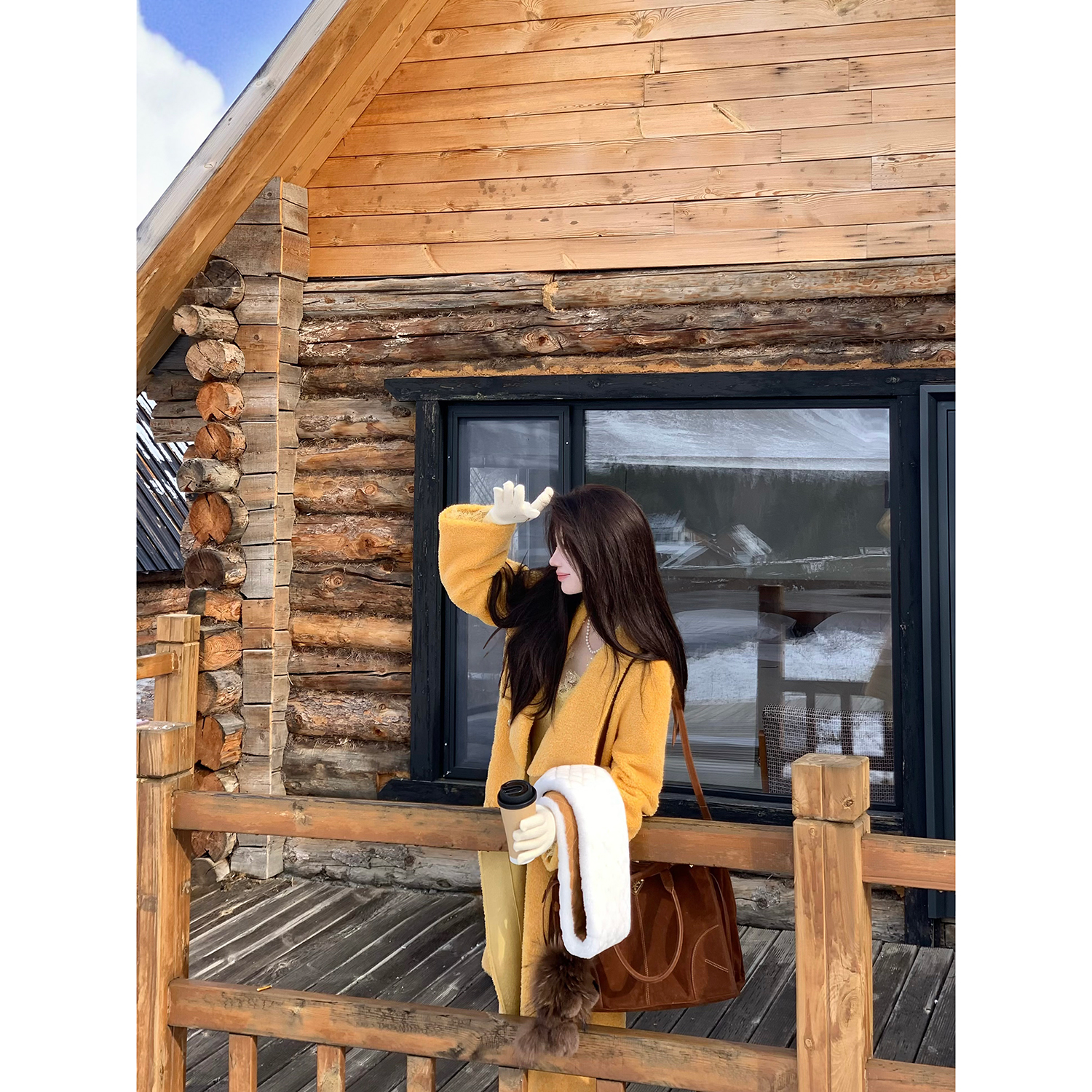 Sun雅乔【VOGUE封面】冬装新款长袖翻领皮毛一体长款大衣外套女