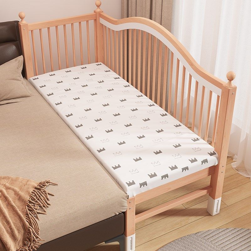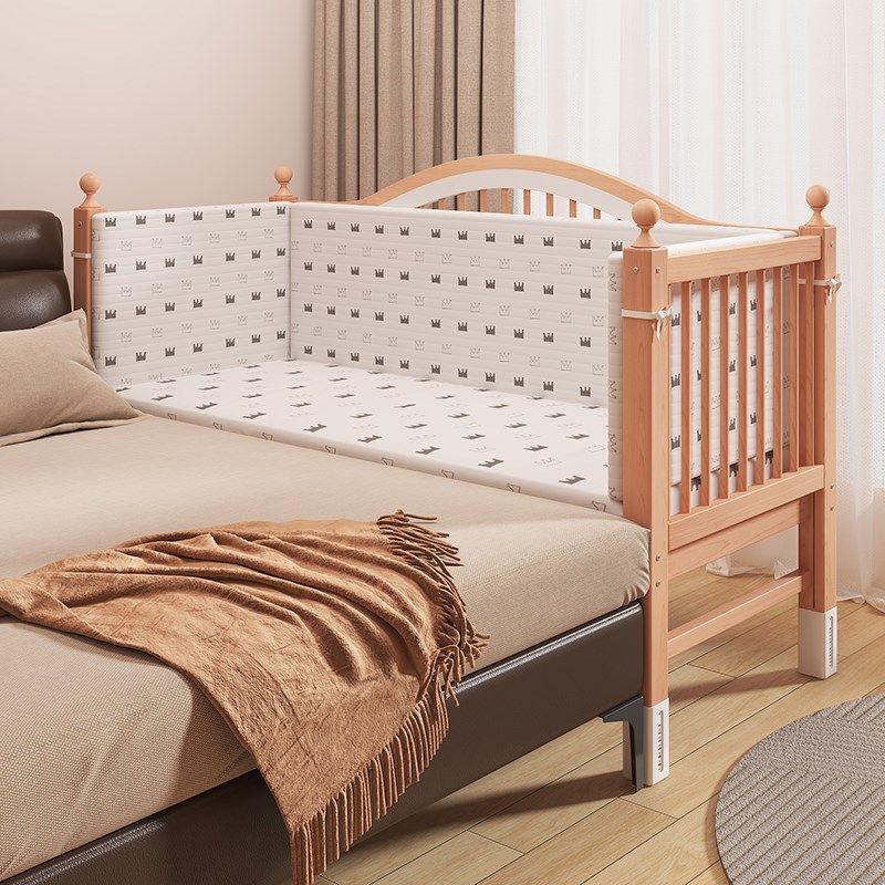 榉木儿童拼接床高低可调带护栏加宽床拼接床边宝宝婴儿床实木小床