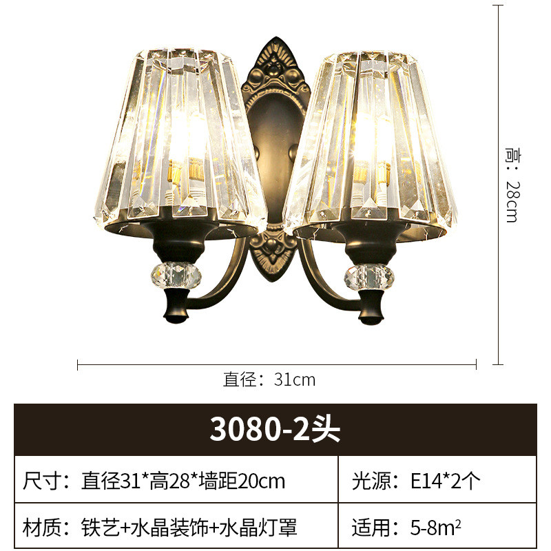 简约轻奢水晶壁灯创意欧式卧室床头灯镜前梳妆台走廊过道壁灯美式