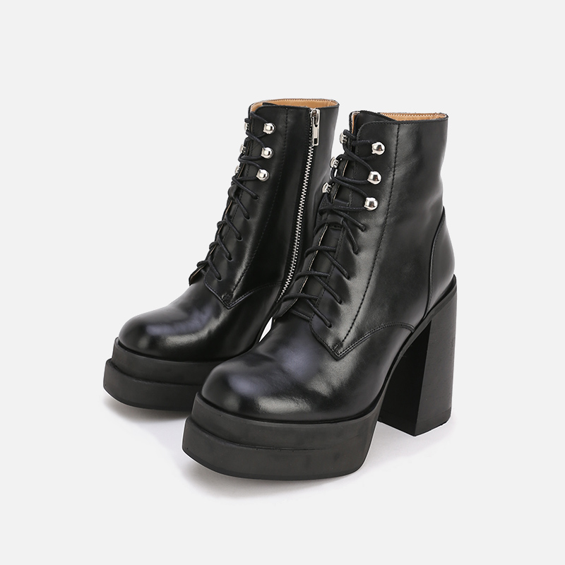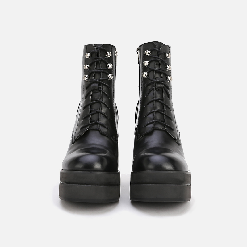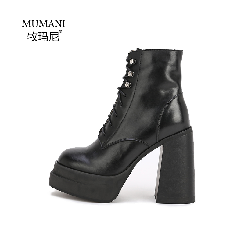 马丁靴女英伦风超高跟防水台厚底松糕系带真皮裸靴增高粗跟短靴