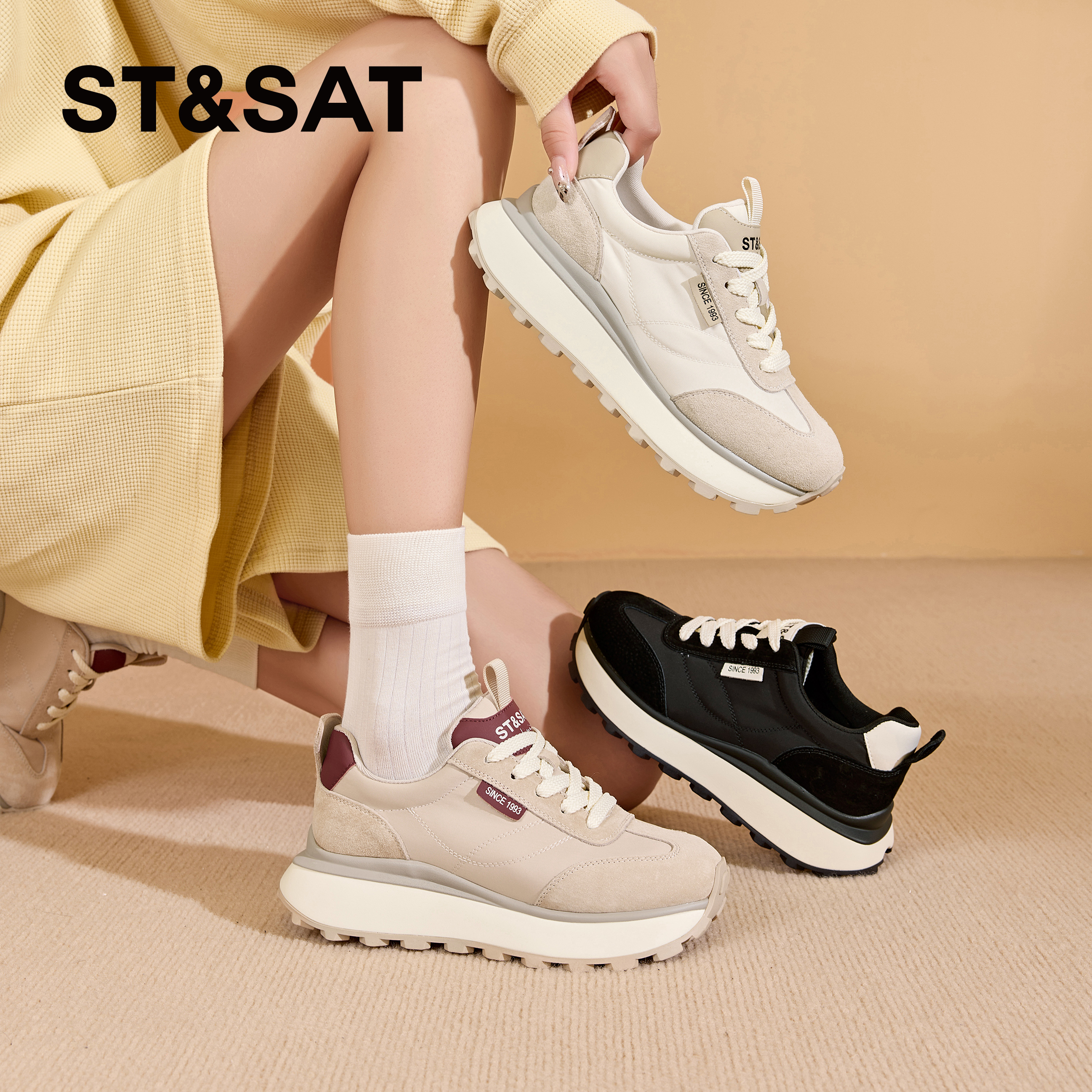 星期六厚底阿甘德训鞋女2025秋季新款真皮轻便透气舒适休闲运动鞋