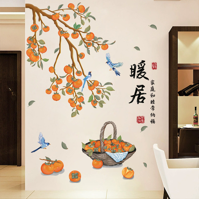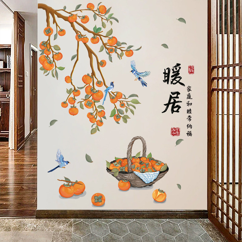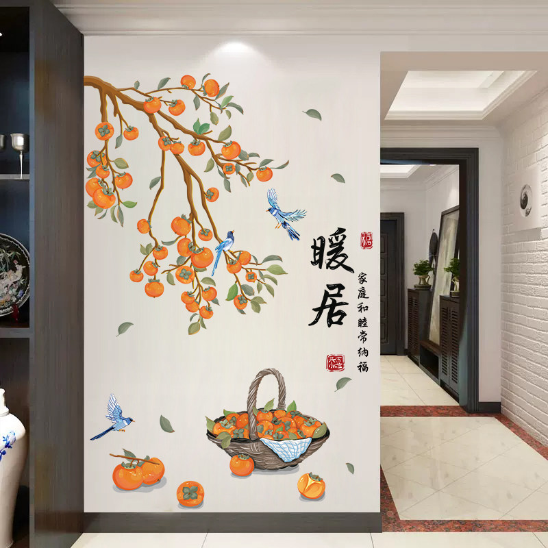 柿柿如意墙贴纸自粘玄关走廊墙面装饰画贴画客厅可移除墙纸不留胶