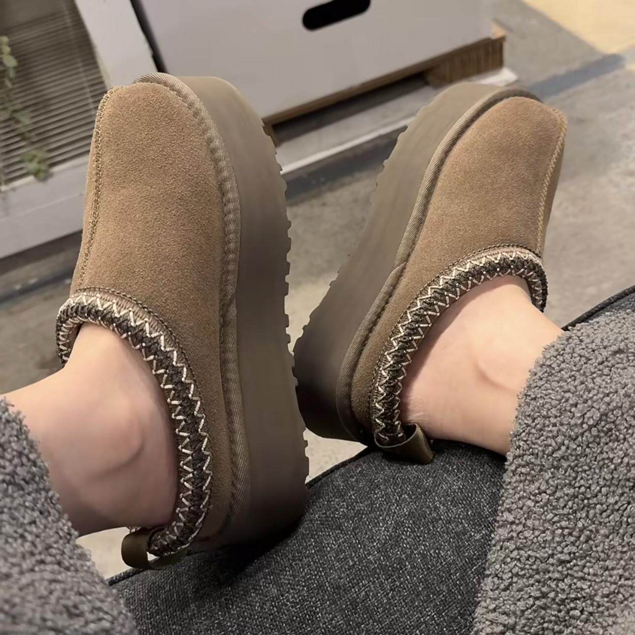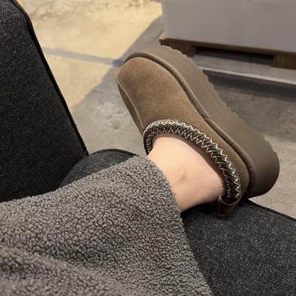 胡桃木显白~~精致又显瘦!厚底增高加绒毛毛保暖包头棉鞋雪地靴女