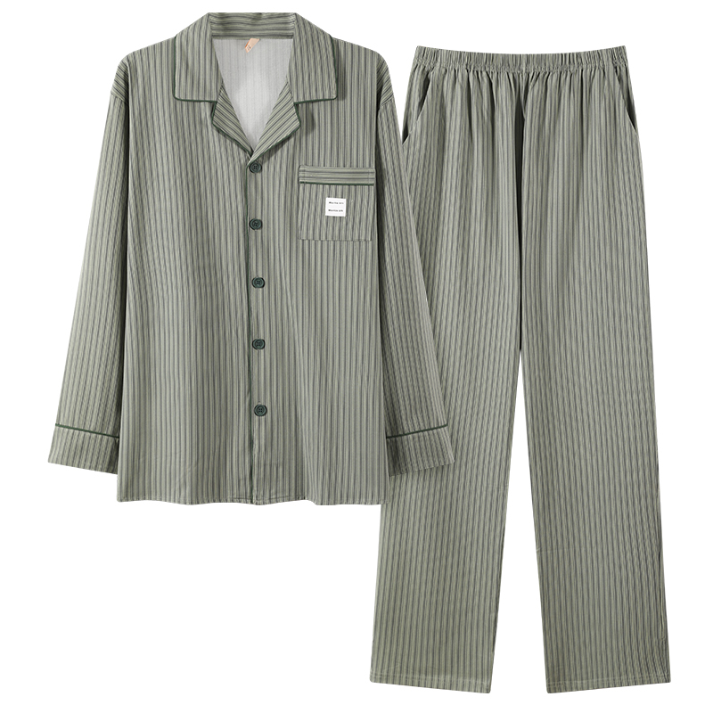 猫人男士纯棉睡衣春秋季长袖宽松高级感条纹秋冬季家居服开衫套装