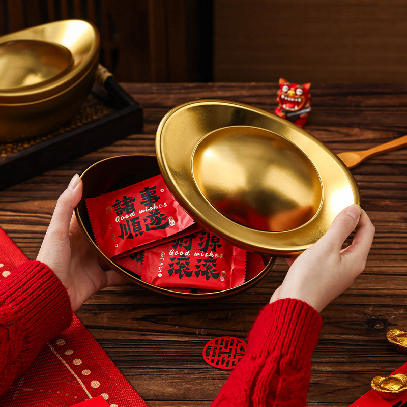 新年金元宝创意礼盒包装马口铁罐糖果巧克力高级年货伴手送人批发
