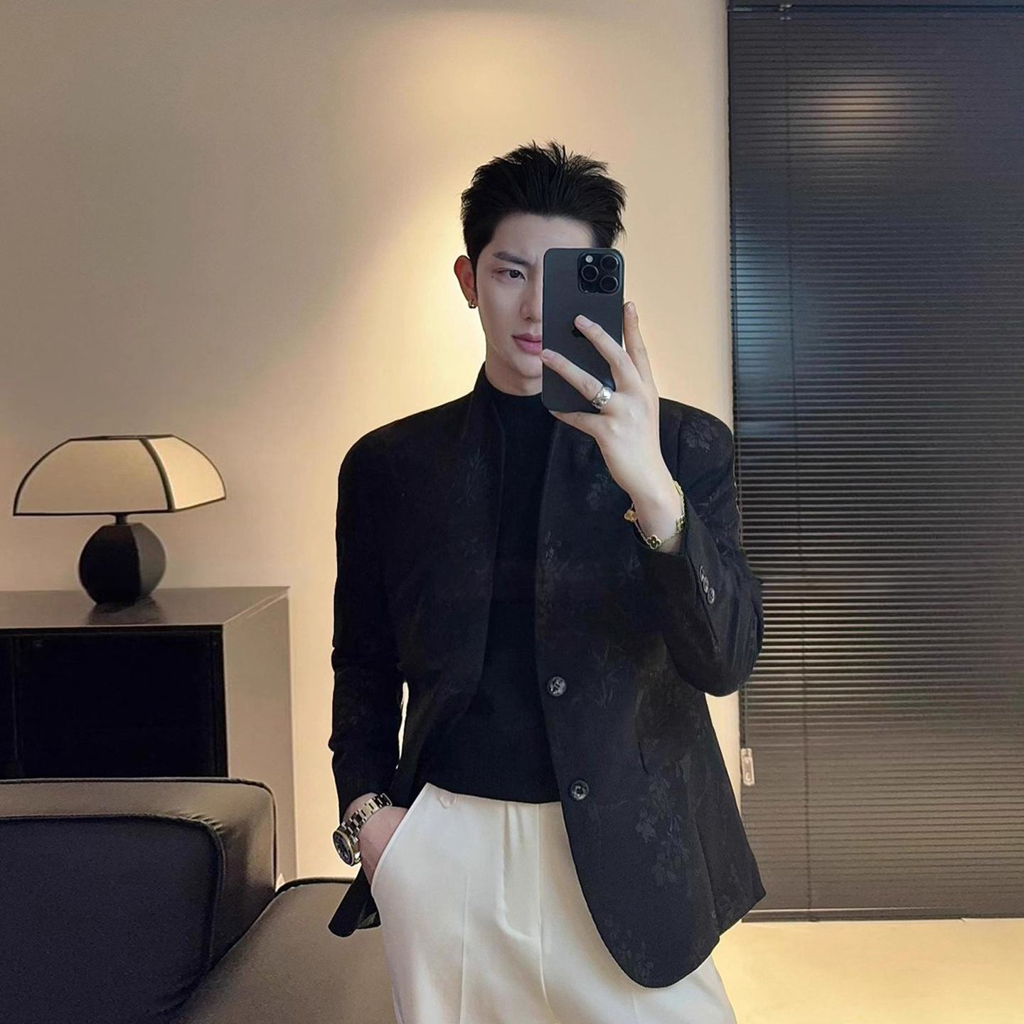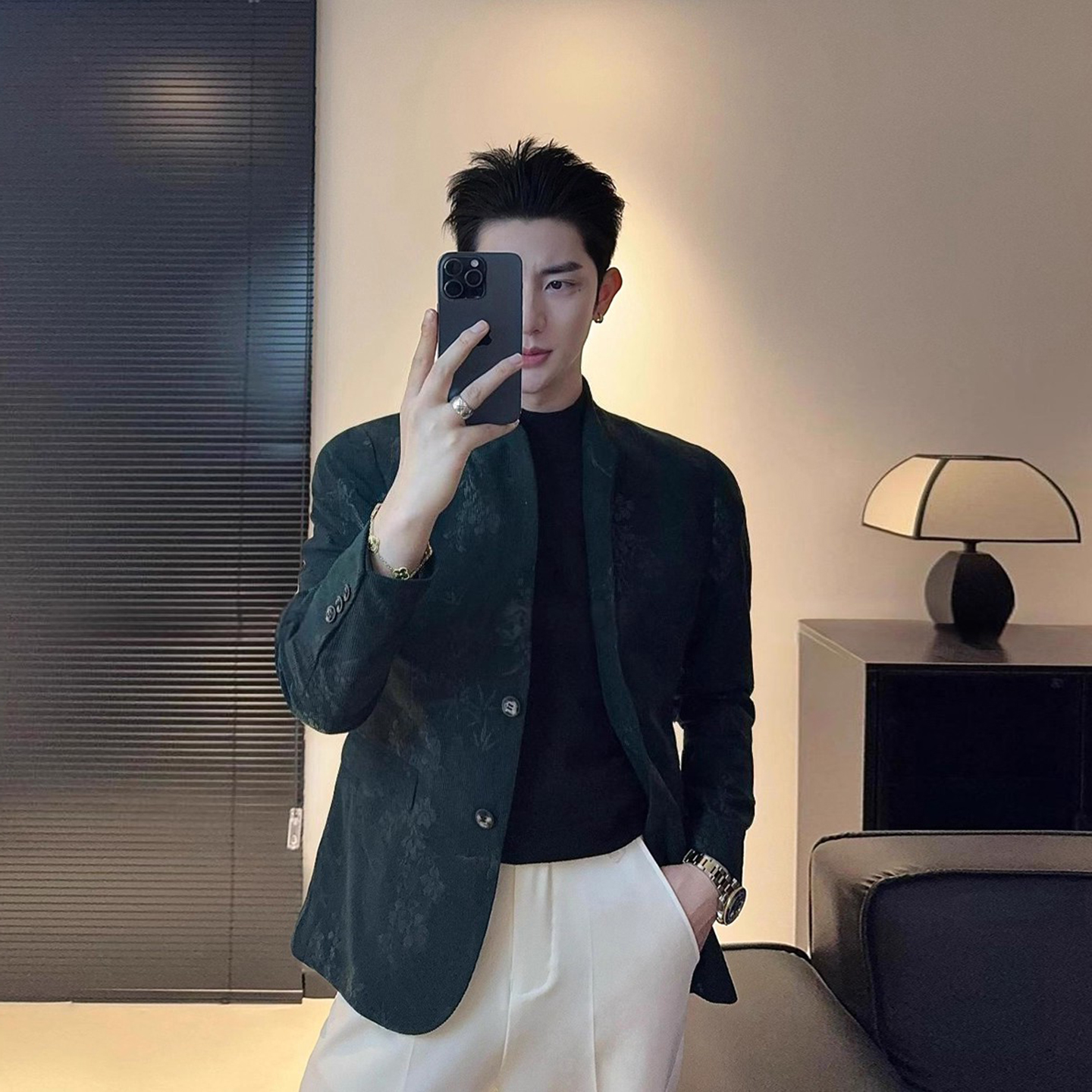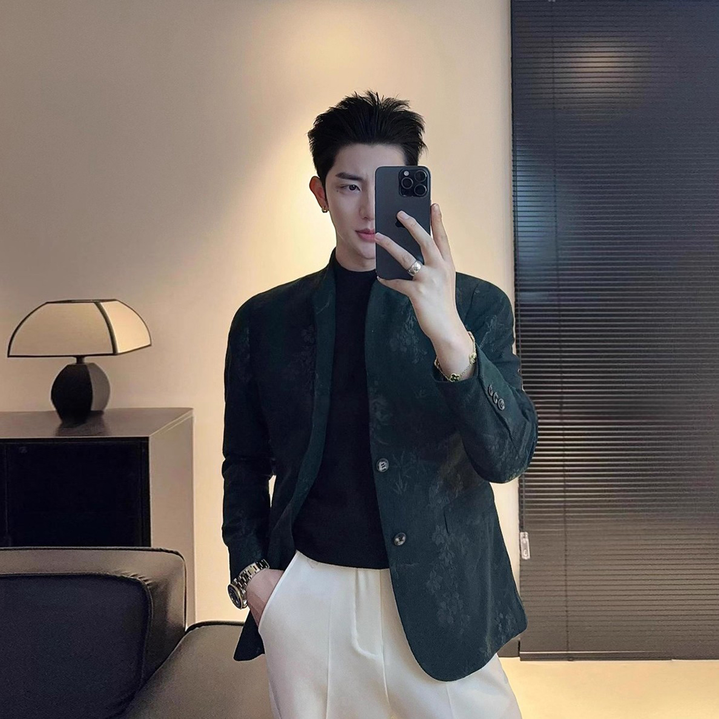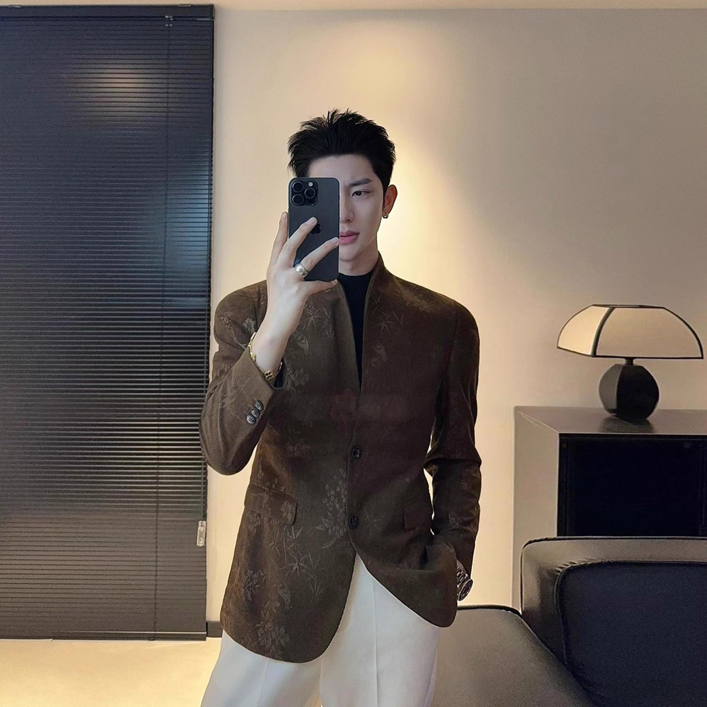 灯芯绒提花西装男士痞帅高端轻奢休闲小西服修身收腰商务单西外套