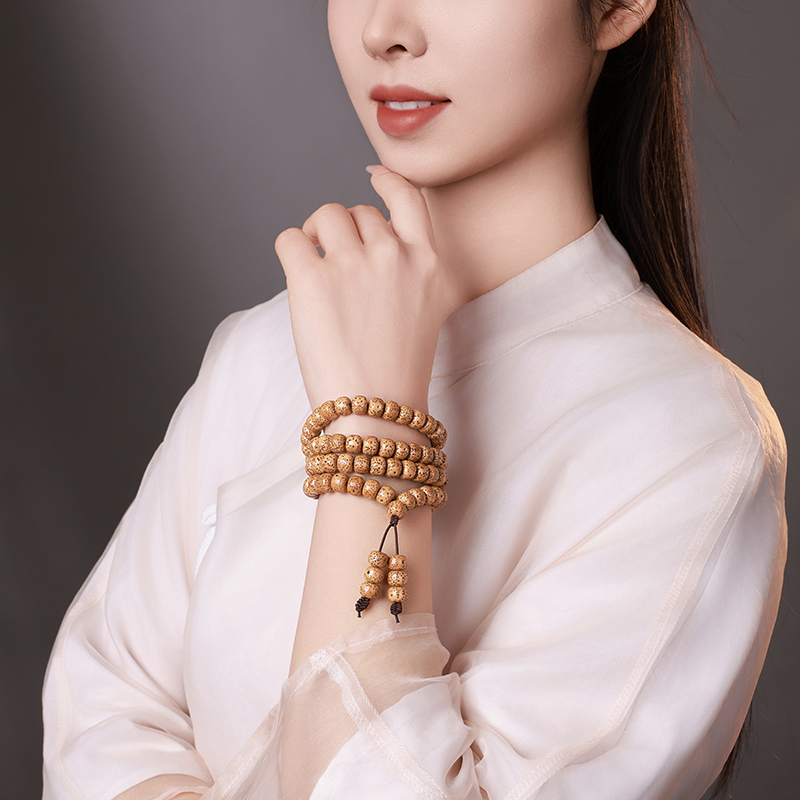 月印百川108颗星月菩提手串男女款鸡油黄老料陈籽多圈手链