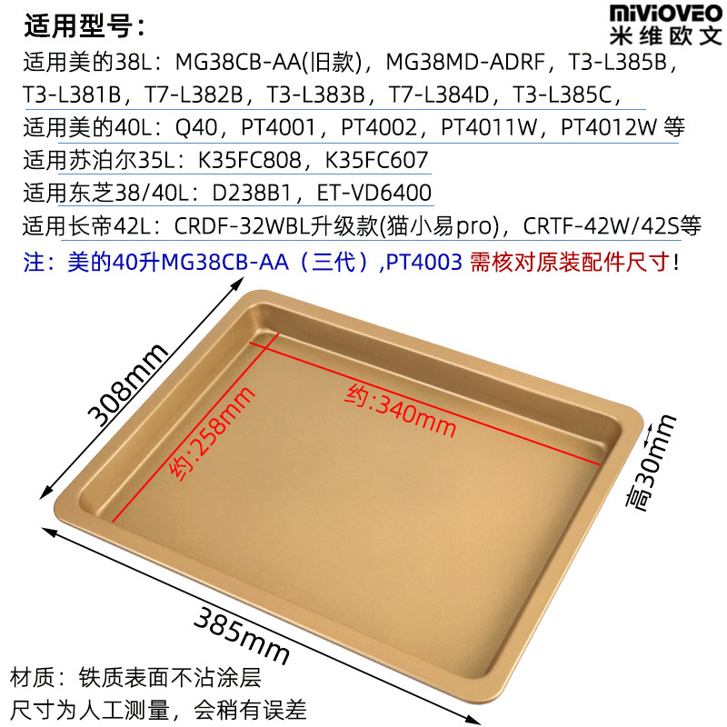 金色不沾烤盘适用长帝海氏苏泊尔格兰仕凯度烤箱平底不粘月饼托盘