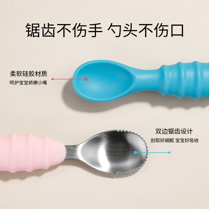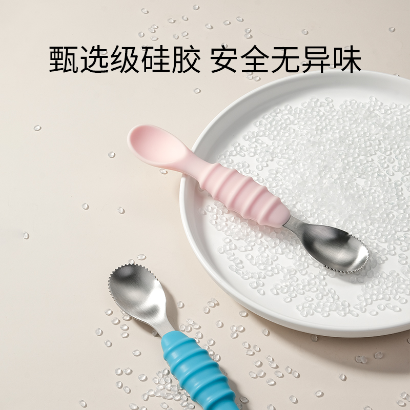 英氏双头刮泥勺婴儿新生儿辅食神器宝宝吃苹果泥刮勺子刮水果泥器