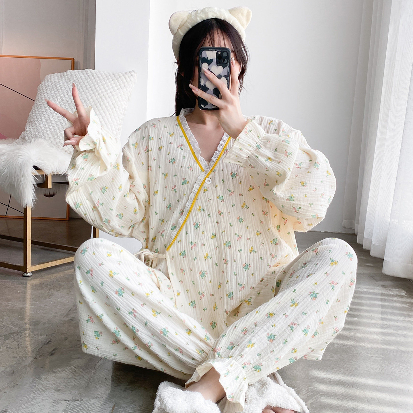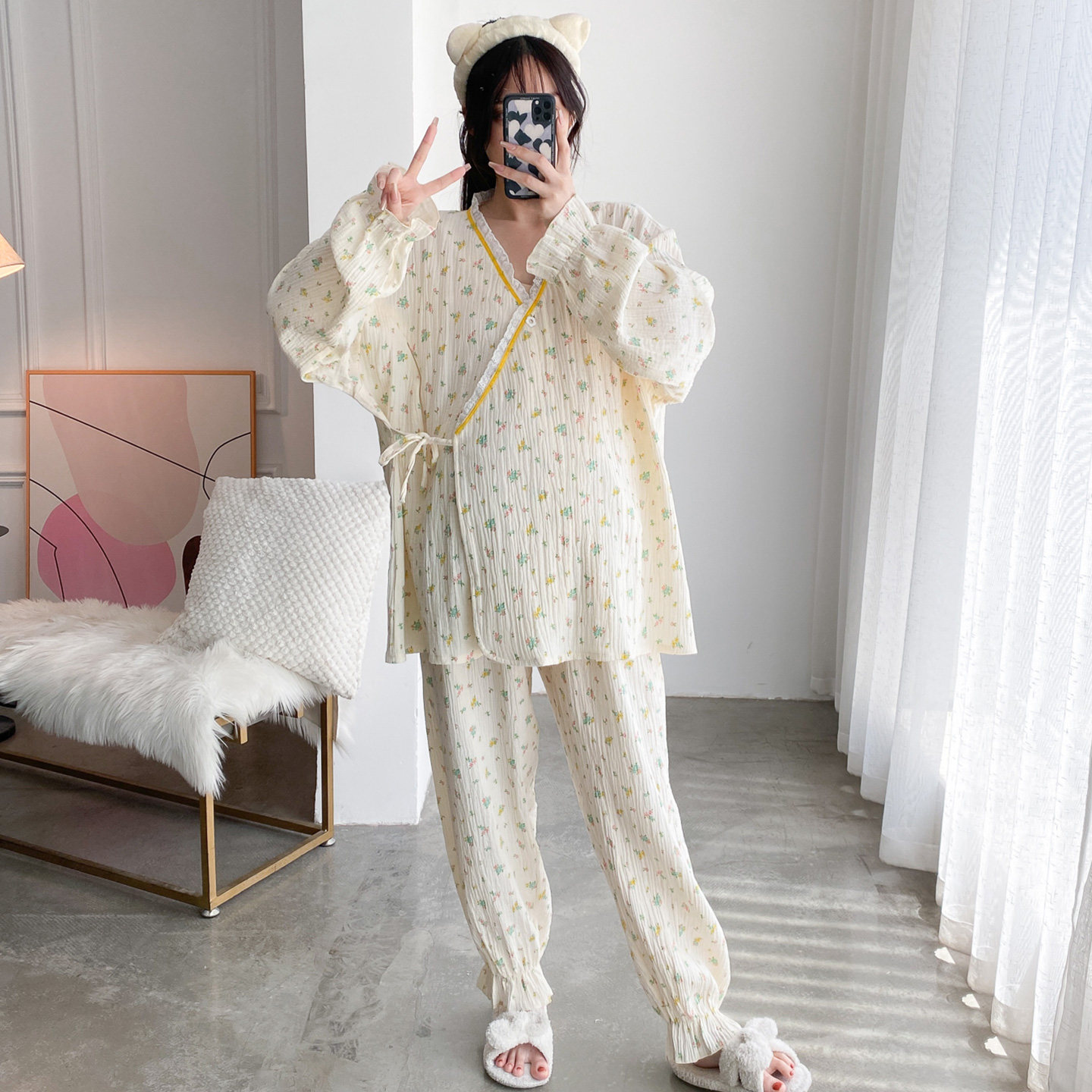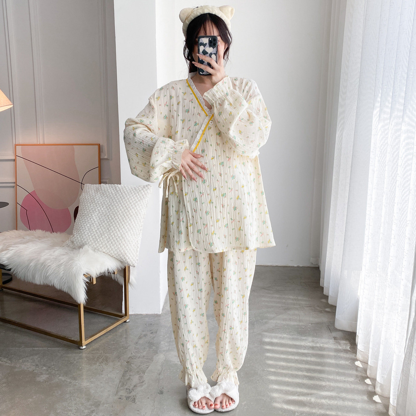 纯棉纱布睡衣孕妇月子服大码200斤春秋季产后哺乳家居服套装300斤
