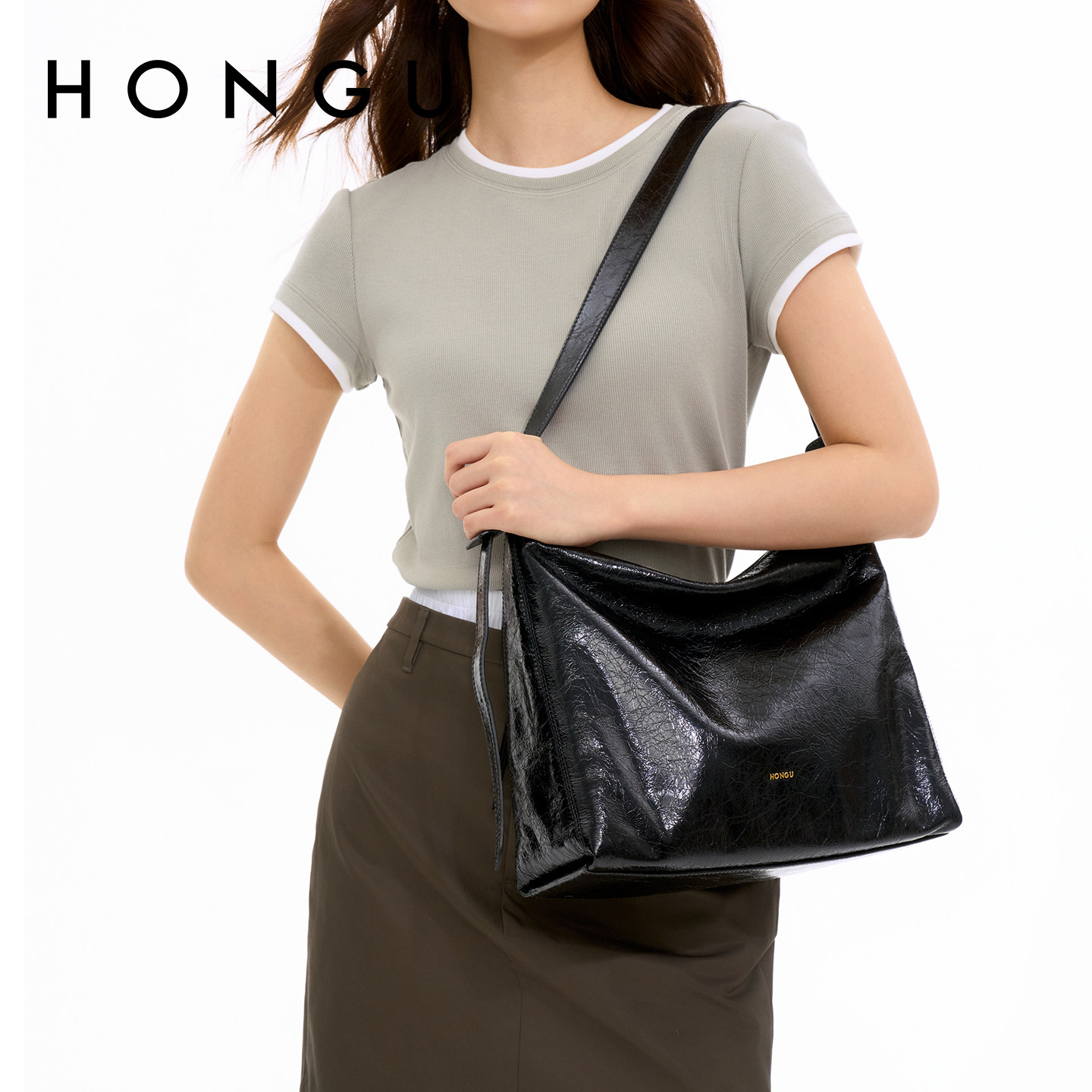 红谷包包女2025新款质感真皮腋下包通勤上班牛皮单肩包女士包