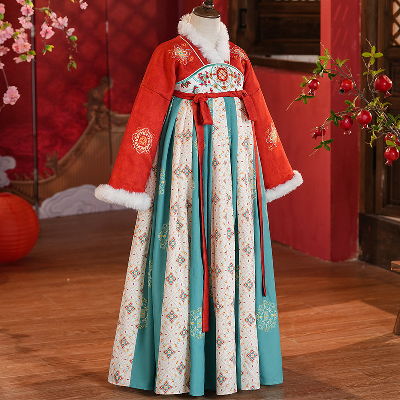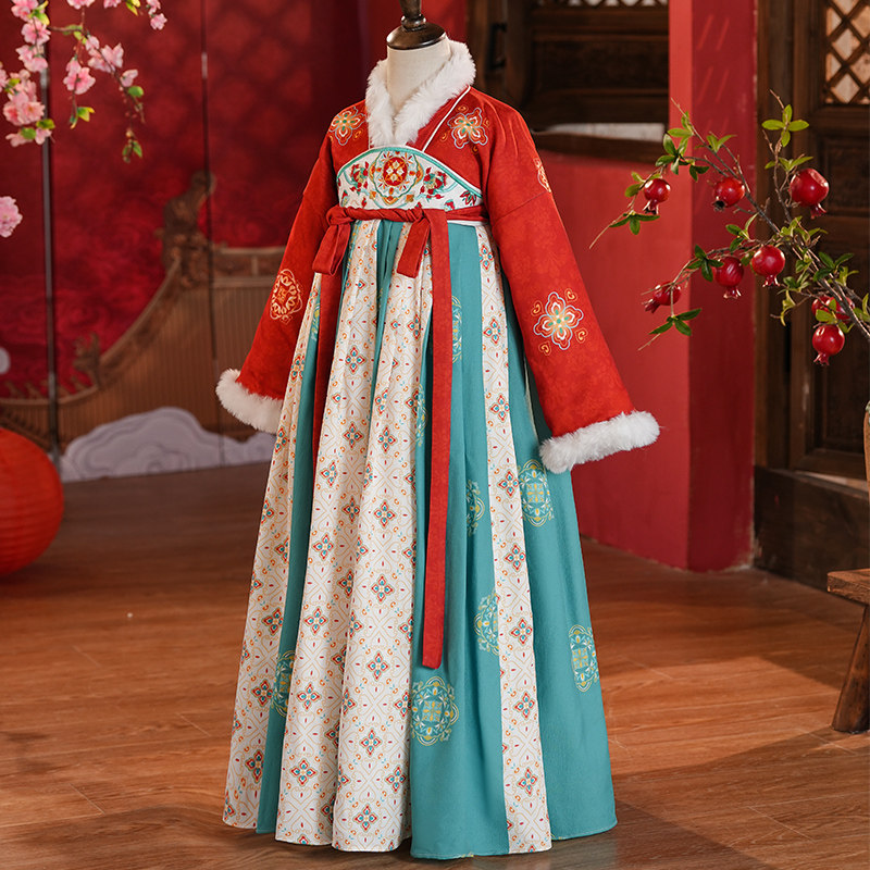 女童汉服秋冬装2025新款儿童古装中国风唐装小女孩冬季加绒连衣裙