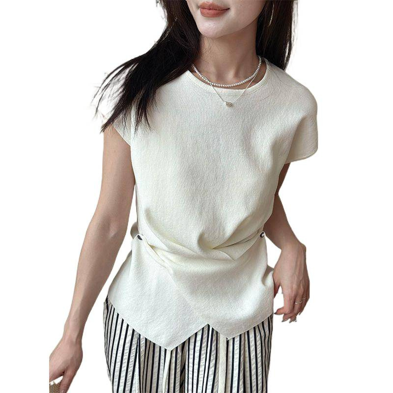 爆款女装设计感不规则针织T恤女小衫2025夏季新款短袖打底衫上衣