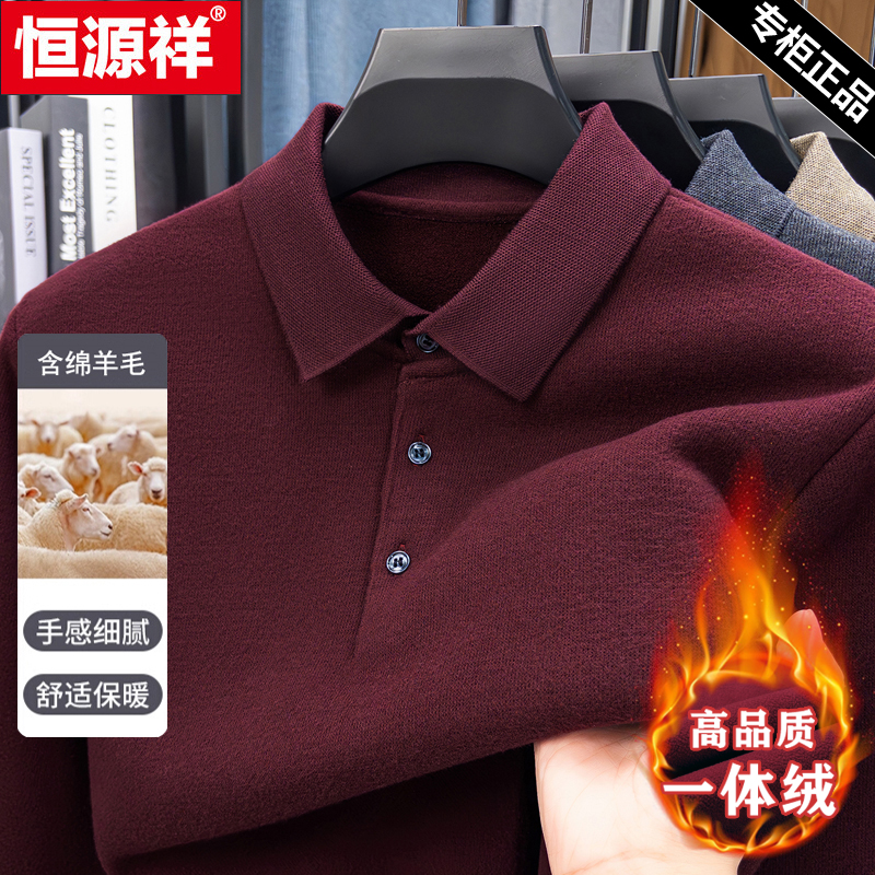 恒源祥秋冬新款中年毛衣男士翻领羊毛针织长袖加绒加厚保暖打底衫