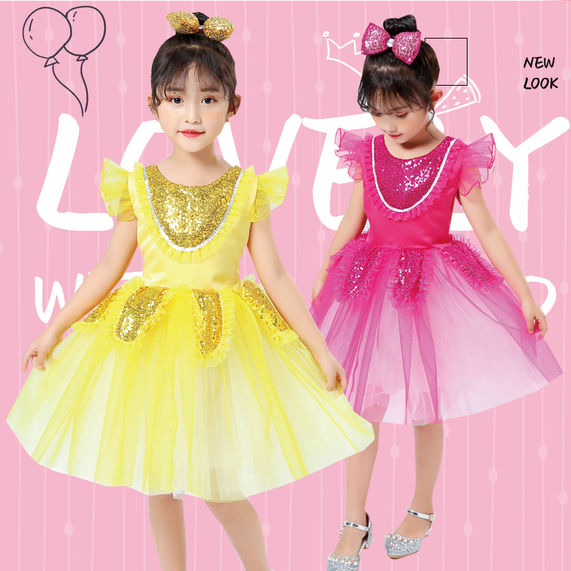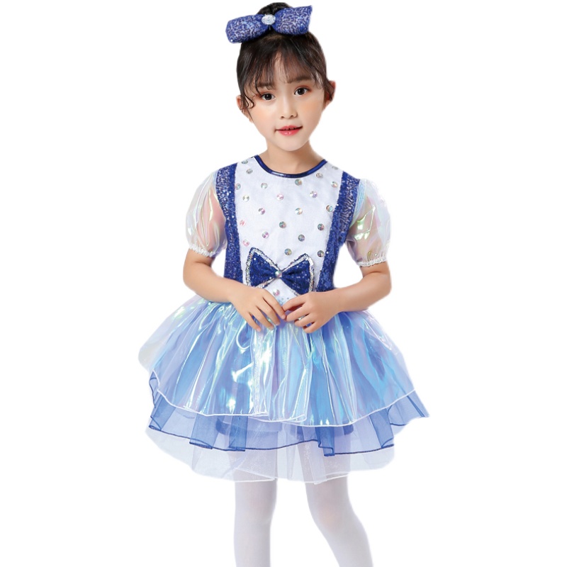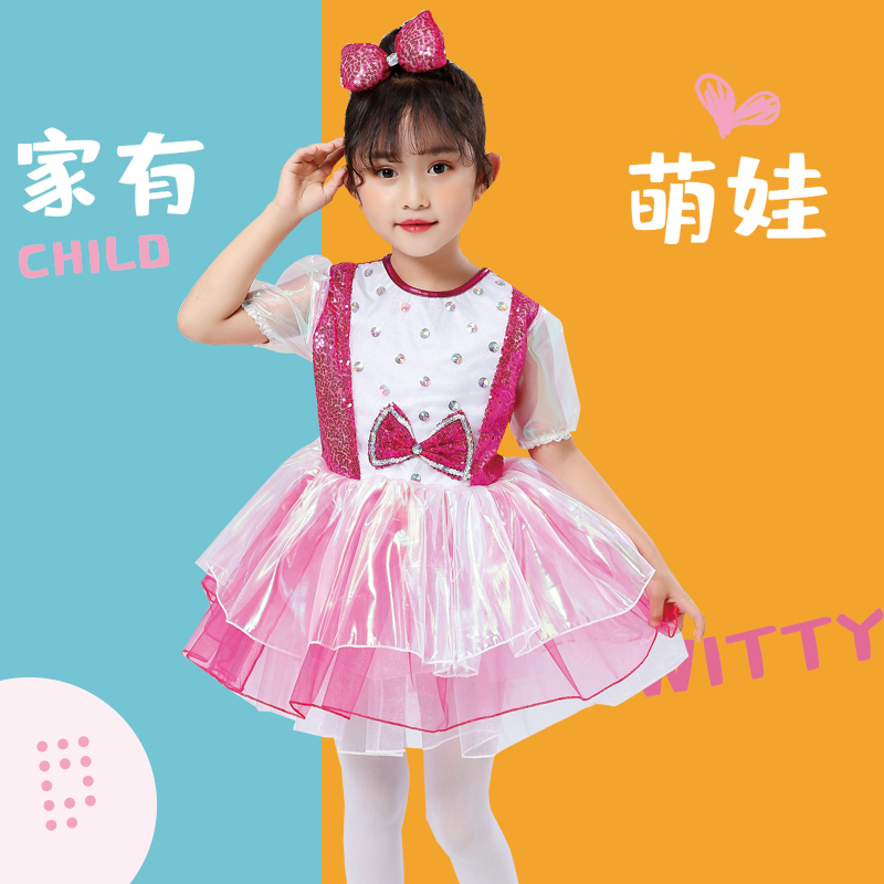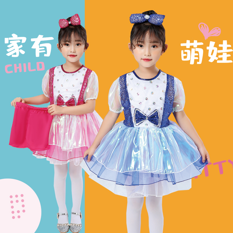 儿童演出服女童可爱蓬蓬纱裙幼儿园团体舞蹈舞台连衣裙亮片表演服