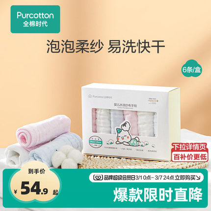 全棉时代纱布手帕纯棉口水巾新生儿围嘴婴儿洗脸宝宝小方巾6条