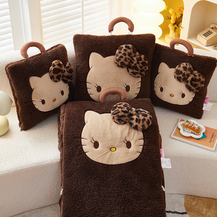 秋冬加厚长毛绒凯蒂猫抱枕被子毯靠垫沙发汽车午睡枕头多功能被