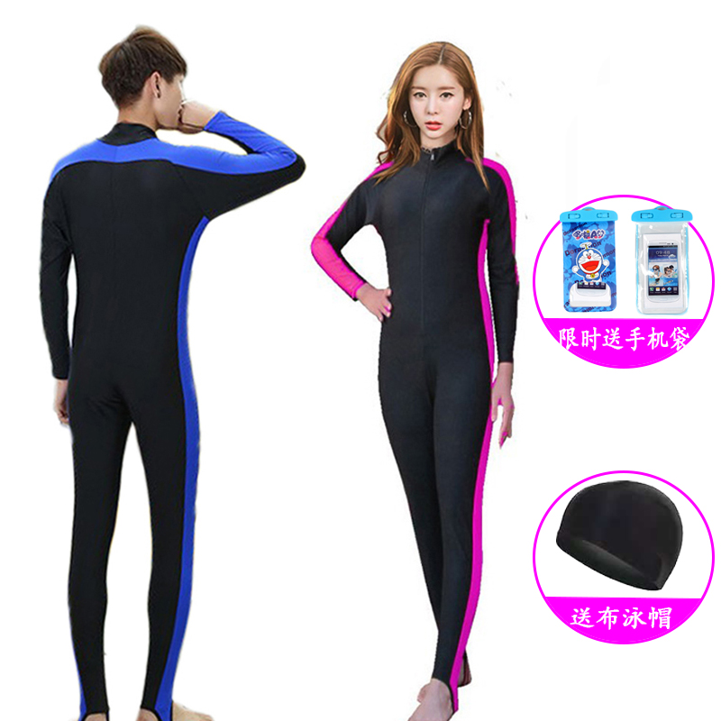 新款情侣拉链潜水服加肥加大泳衣女男全身连体防晒长袖长裤浮潜衣