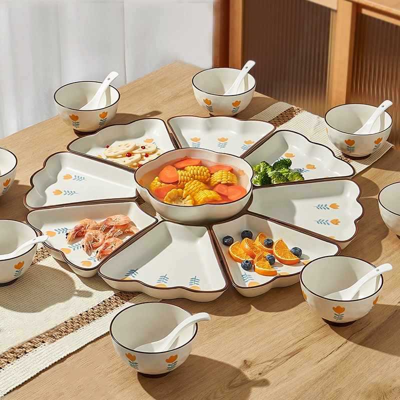 过年团圆饭拼盘餐具组合圆桌盘子菜盘家用2023新款创意碗碟盘套装
