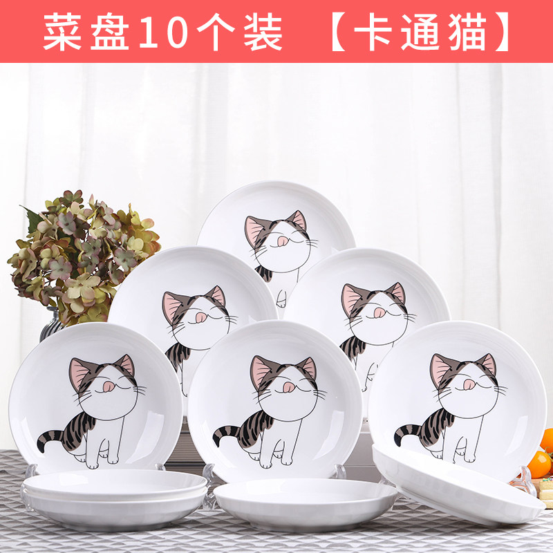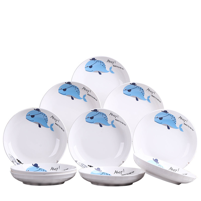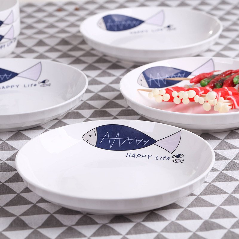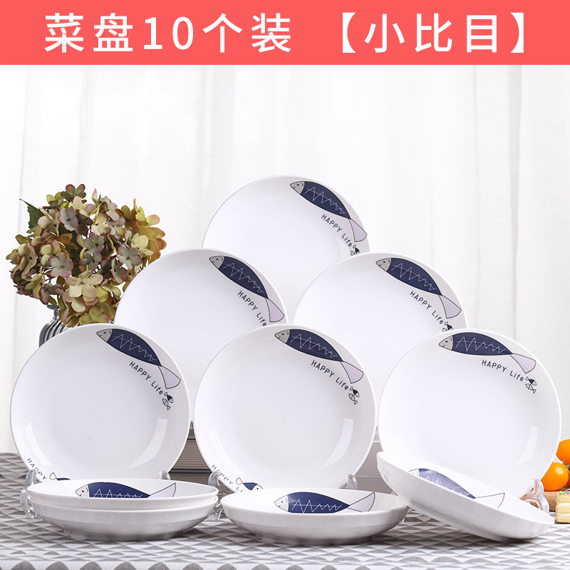 新款10个盘子 家用卡通菜盘饭盘汤盘套装 不规则鱼盘子果盘可微波