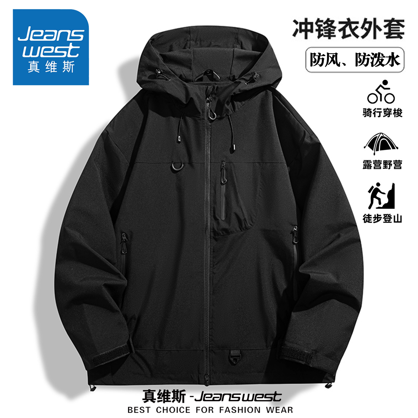 真维斯冲锋衣外套男女款春秋季户外防风防水登山服骑行服爬山夹克