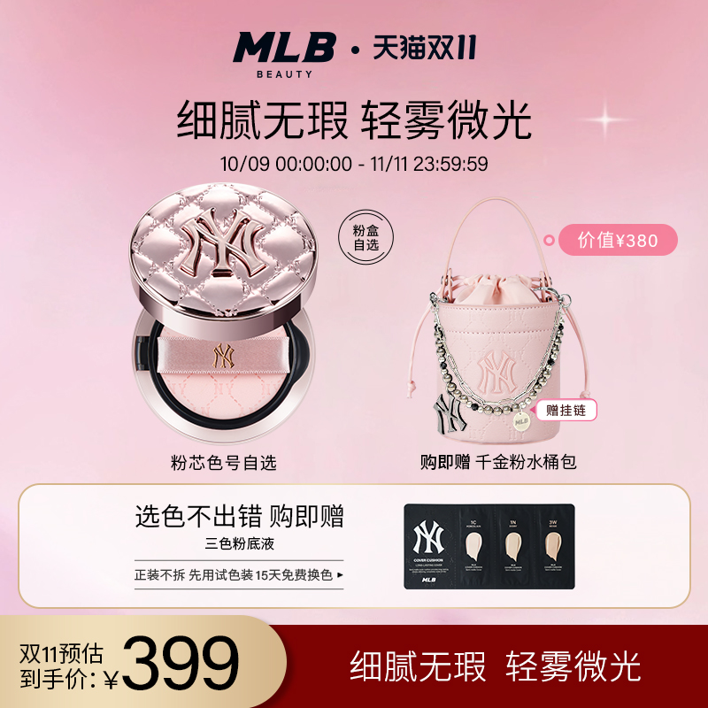 MLB持妆遮瑕气垫送千金粉水桶包