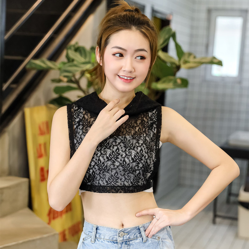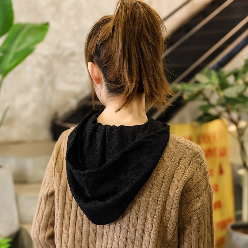 高档防晒领子秋季新款双层帽子防嗮蕾丝帽子休闲百搭卫衣假帽子女