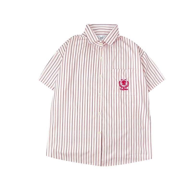 哈利波特学院风条纹刺绣短袖衬衫