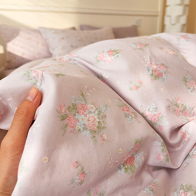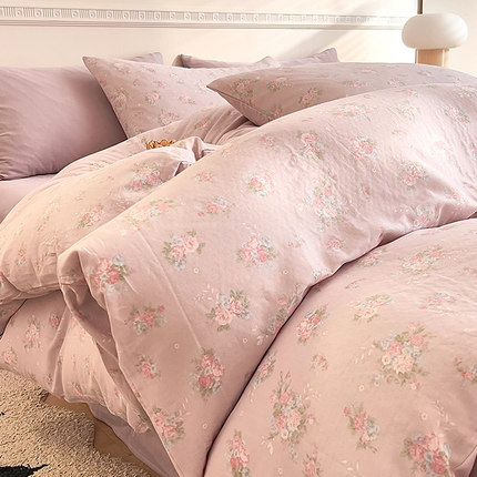 ins花卉全棉双层纱被套100纯棉床上四件套床单笠被罩儿童宿舍床品