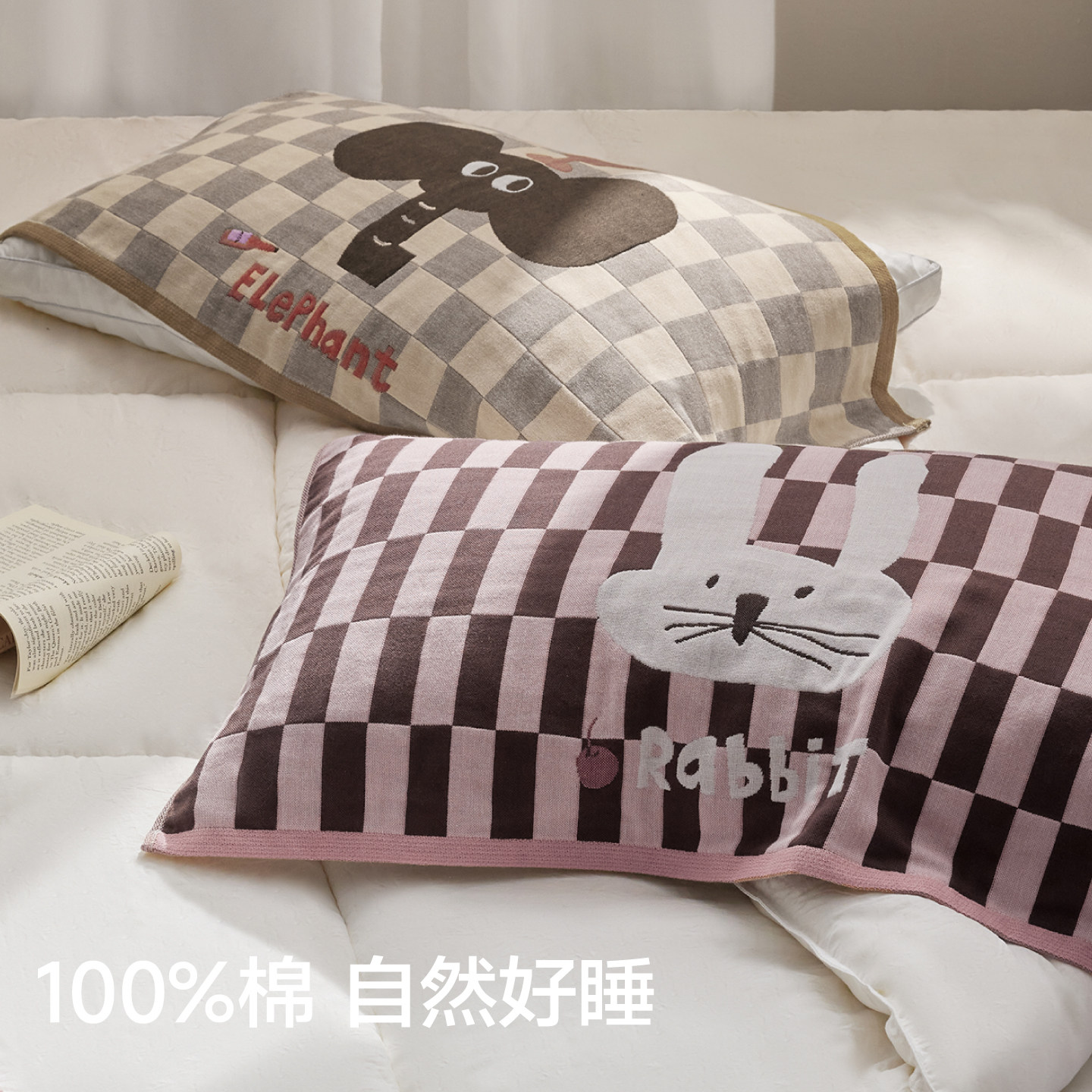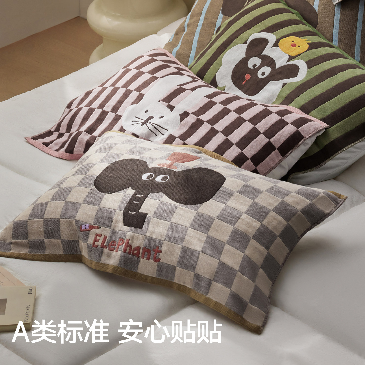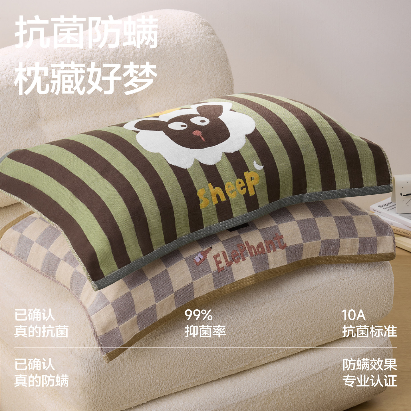三利枕巾纯棉一对装10A抗菌全棉纱布枕头巾防滑柔软卡通2025新款