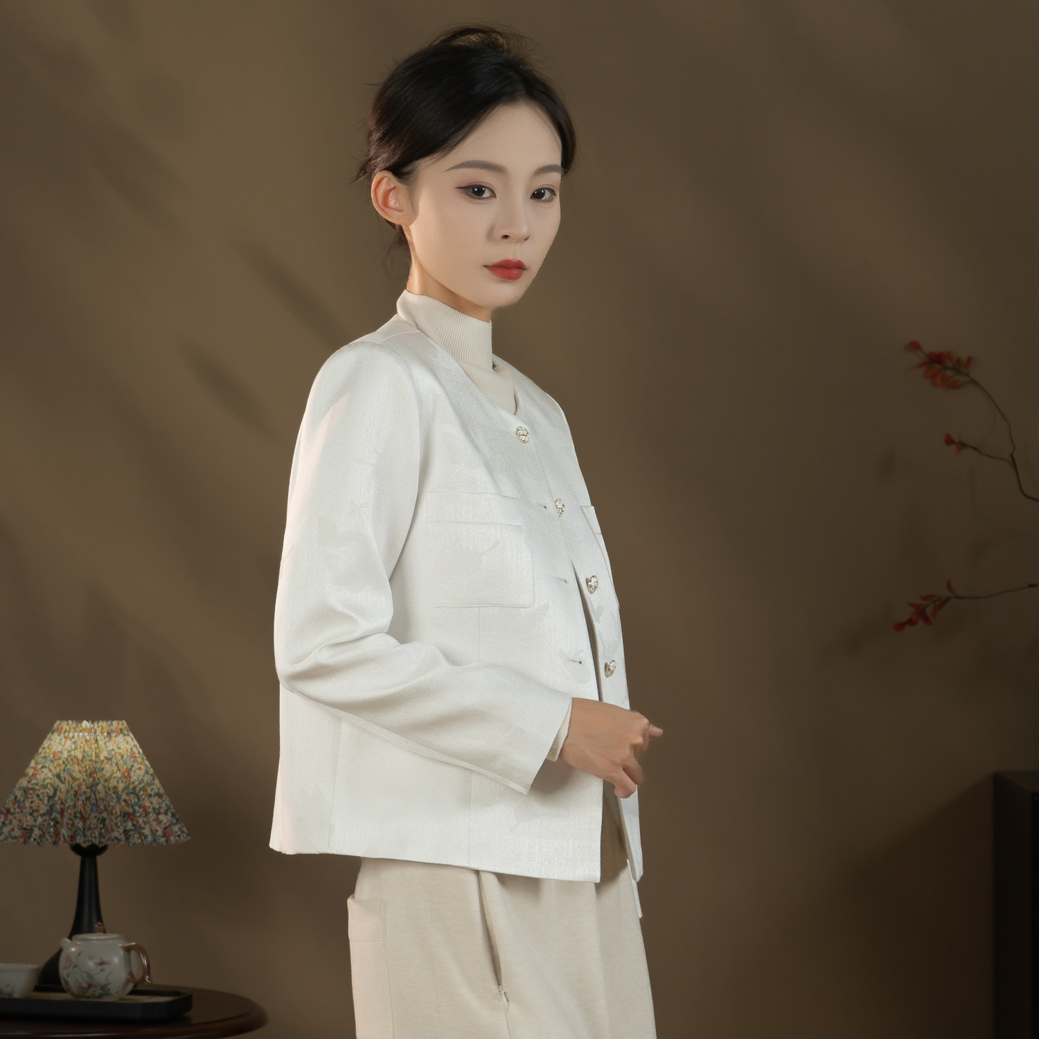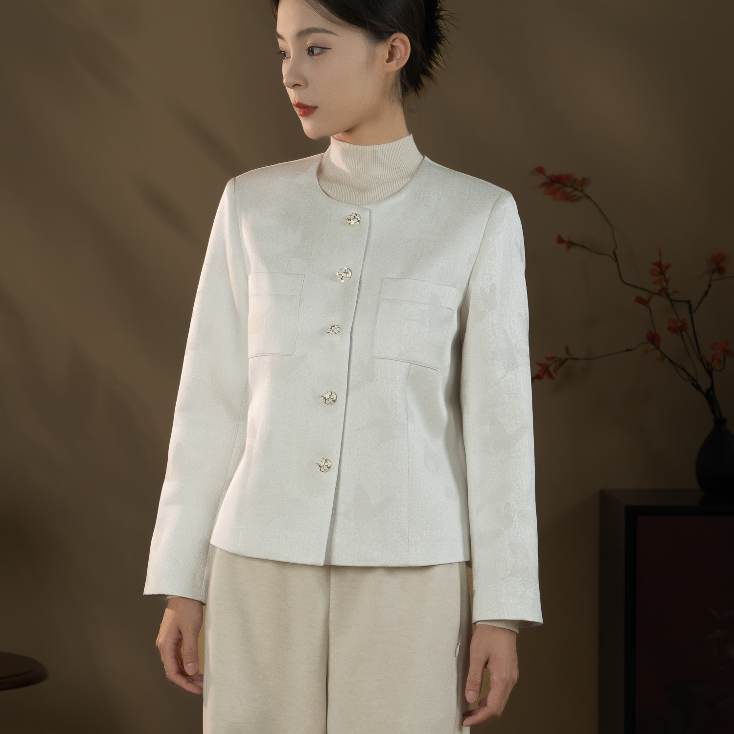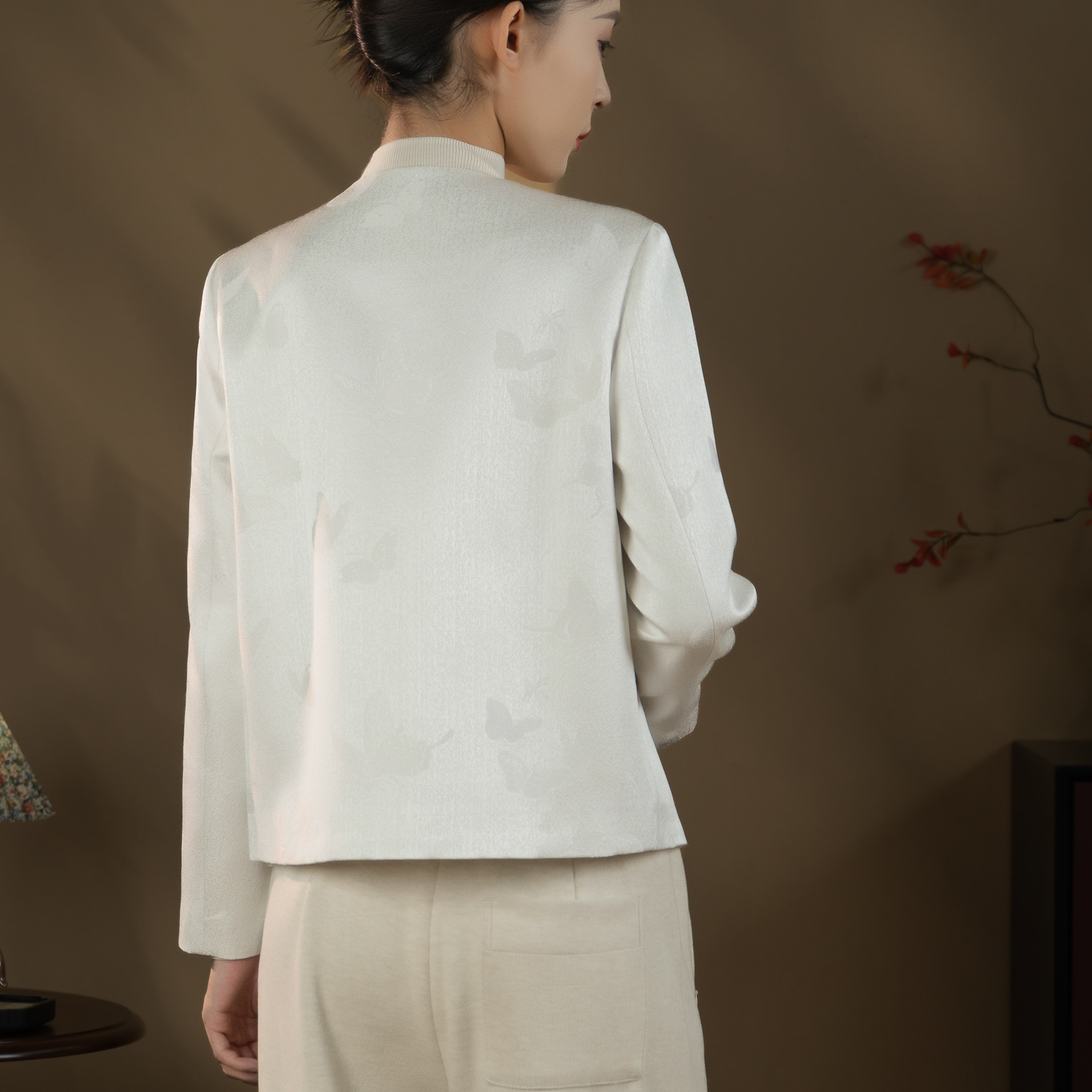 晴春蝶戏图-上久楷带钢印2025秋季小香风桑蚕丝丝毛螺钿外套WT418