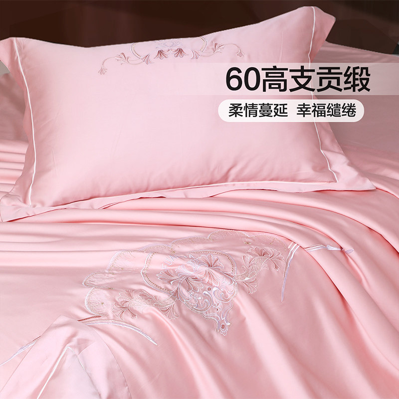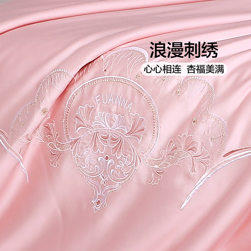 富安娜四件套结婚粉色床上用品婚庆喜庆纯棉床单婚房新婚全棉被套
