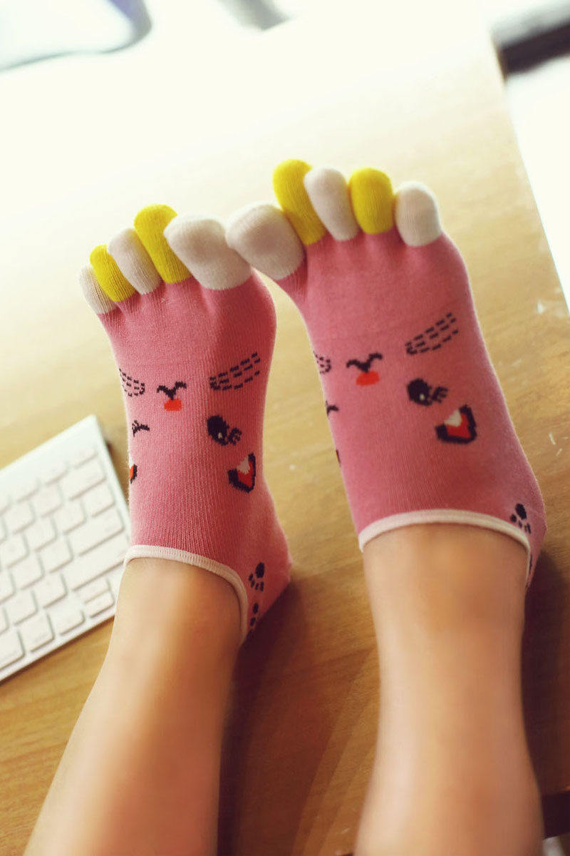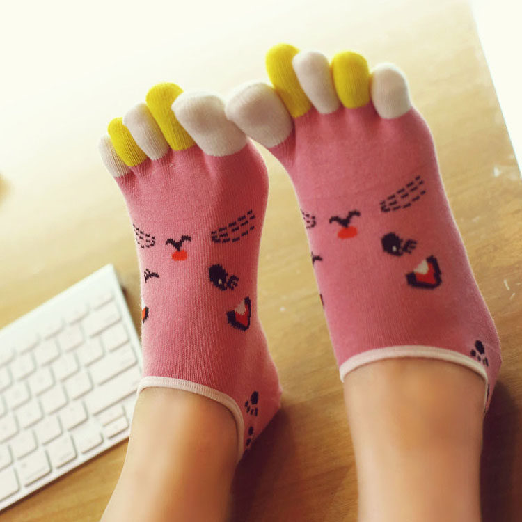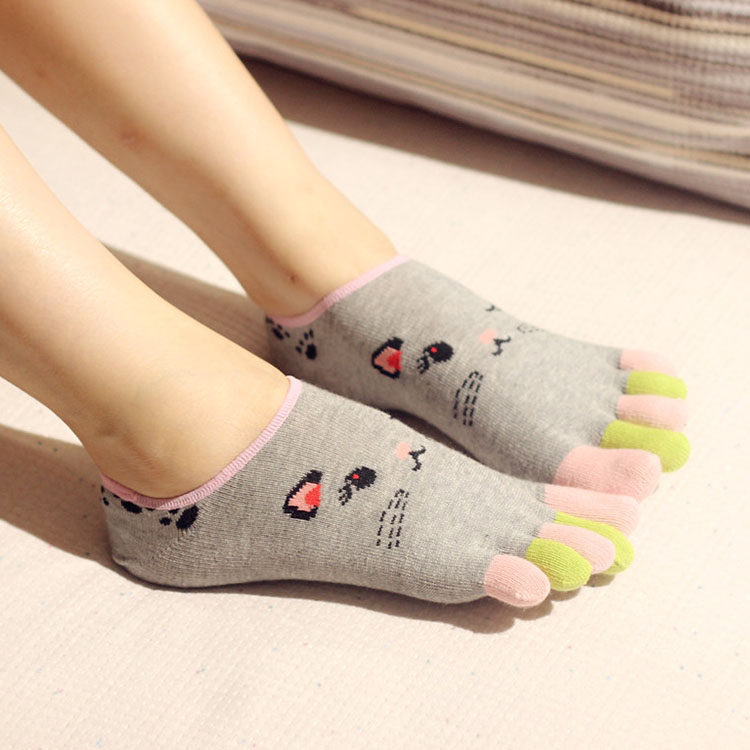 四季款 五指袜女全纯棉船袜半隐形袜分脚趾袜底 防臭吸汗船袜