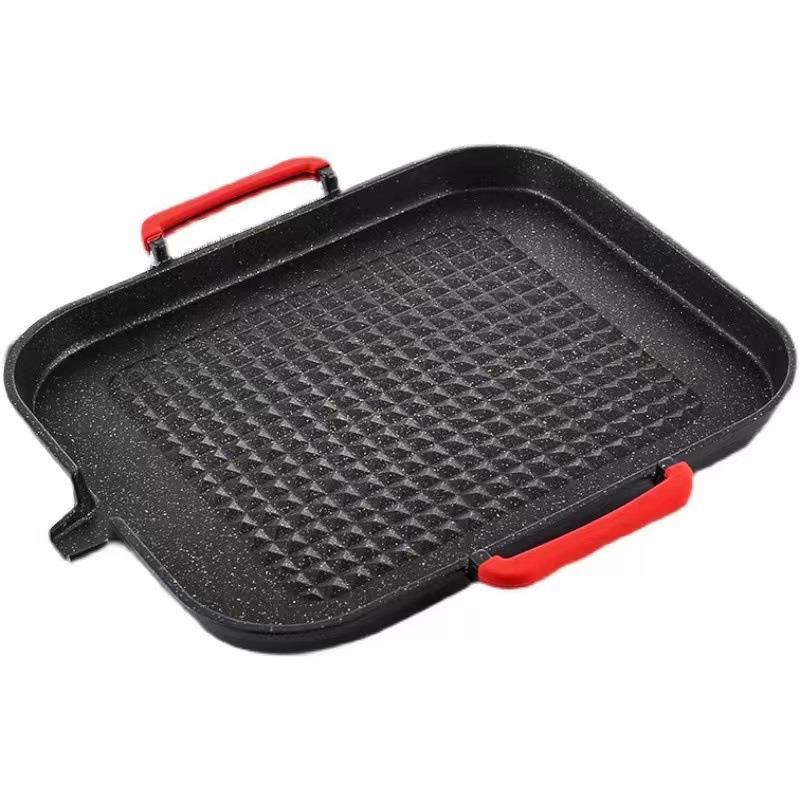电磁炉烤盘韩式麦饭石方形烤盘家用不粘烤肉锅商用铁板烧烧烤盘子