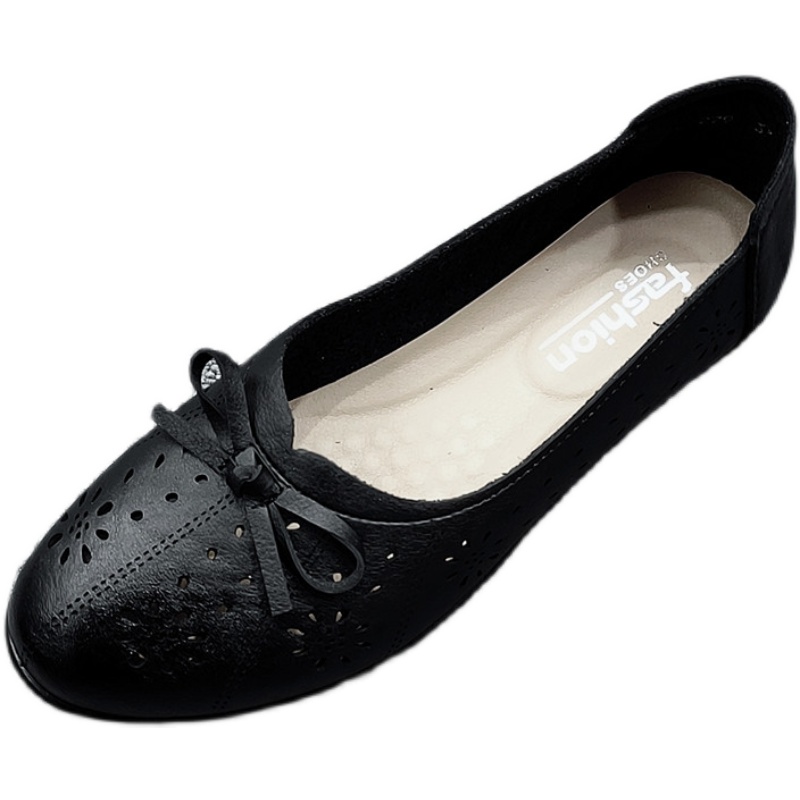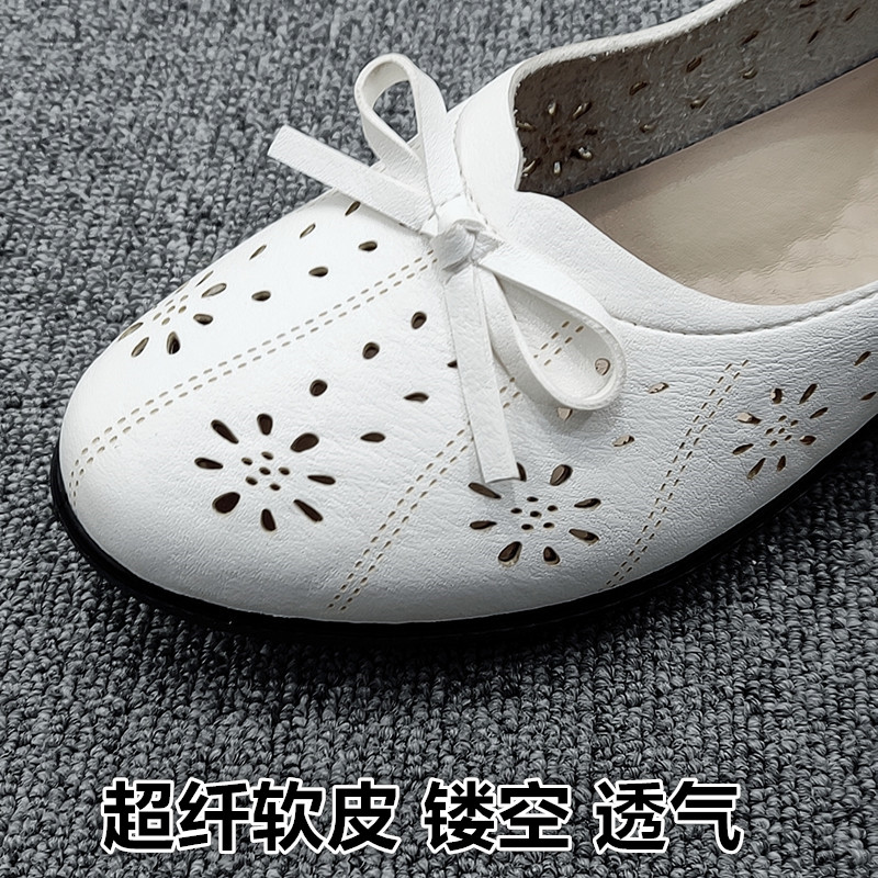 软底妈妈鞋低跟粗跟洞洞鞋v平底皮鞋夏季浅口女鞋一脚蹬中老年凉