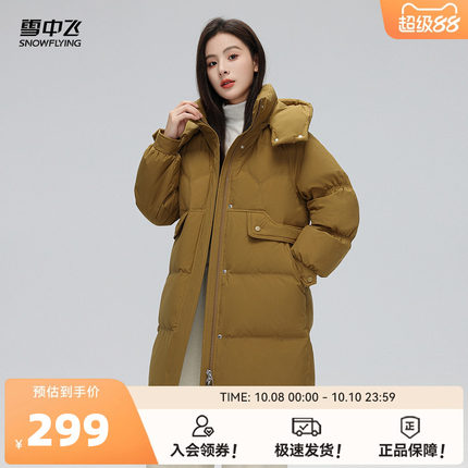 雪中飞冬新款时尚百搭小众可脱卸帽女士中长款羽绒服外套潮外套