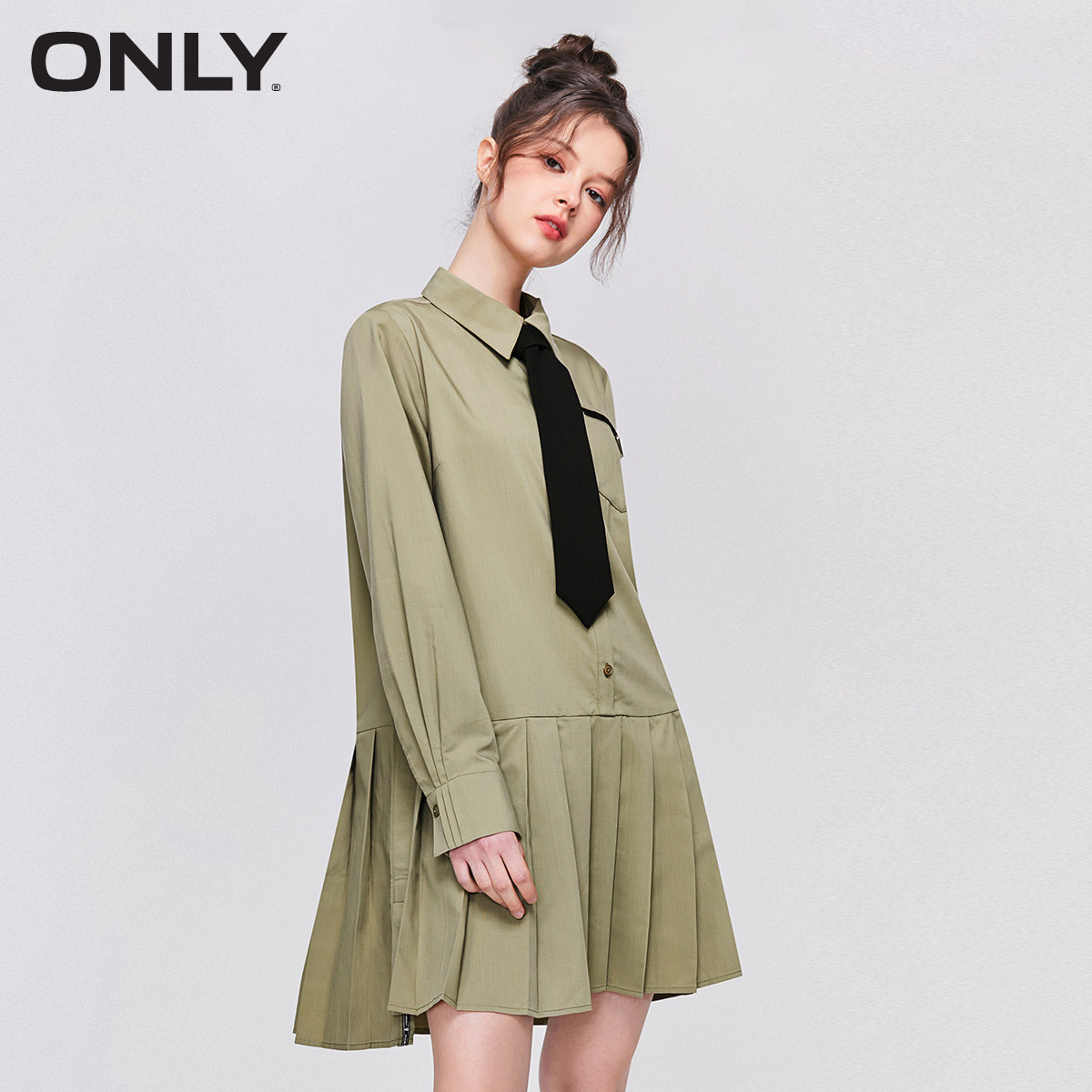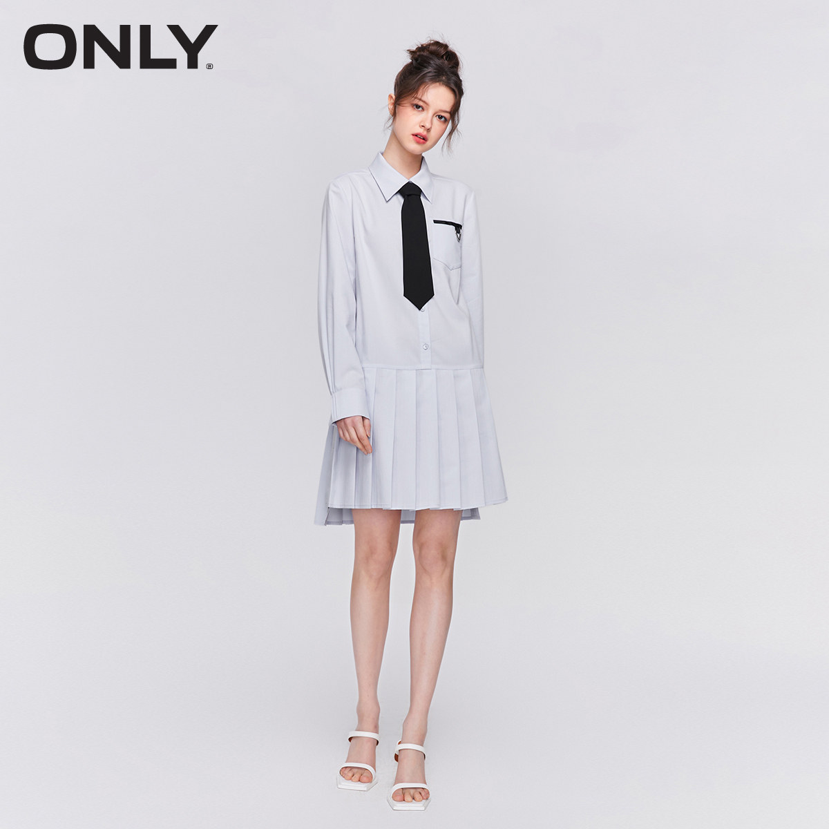 【ONLY奥莱】秋冬气质学院风少女百褶裙衬衫连衣裙女